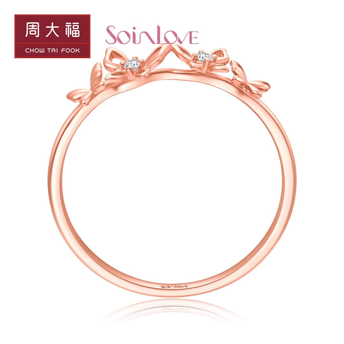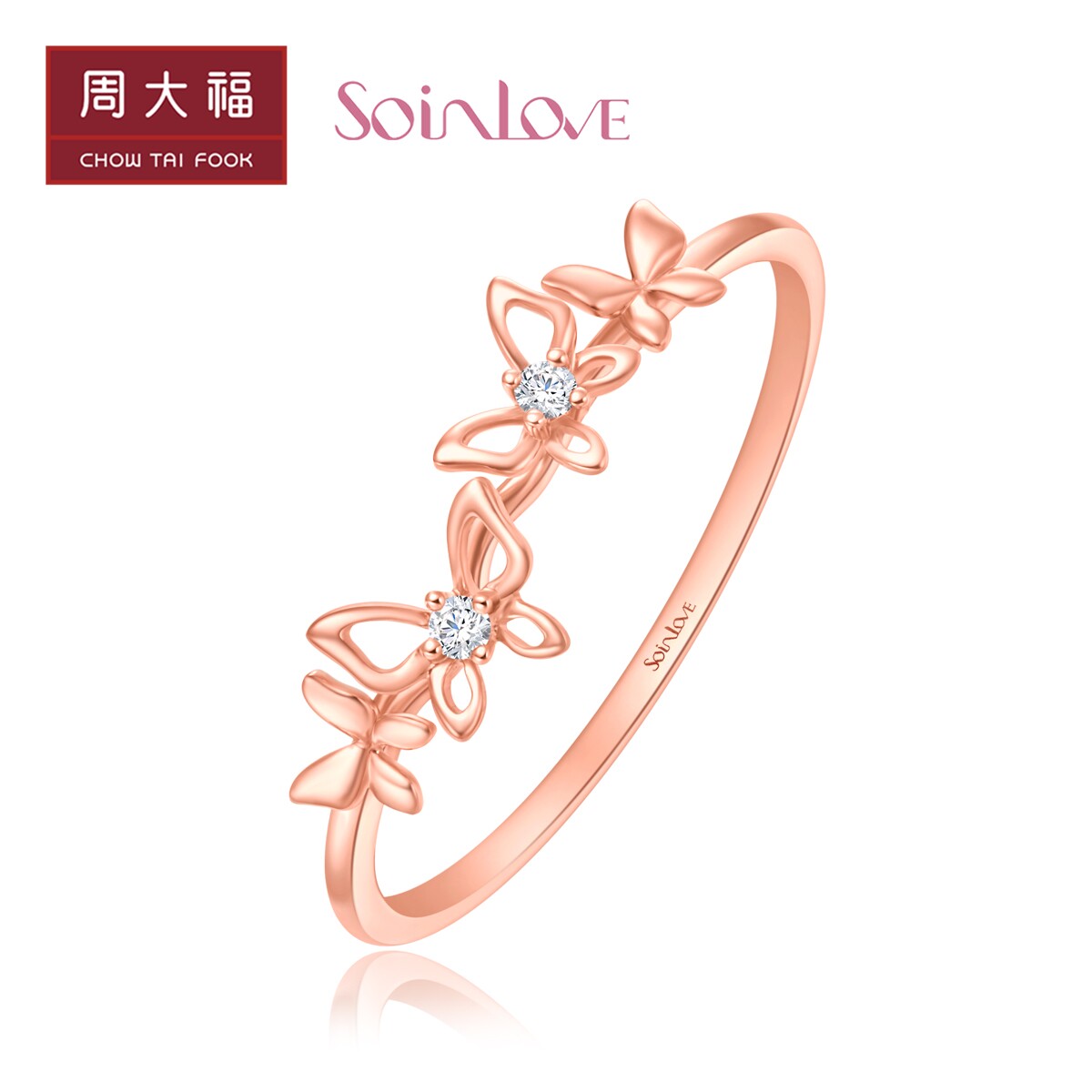 周大福 Кольцо SOINLOVE Versailles Girl из 18-каратного золота с бриллиантами и бабочкой VU1568, женский подарок