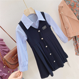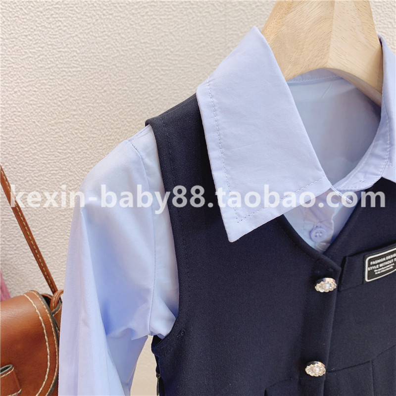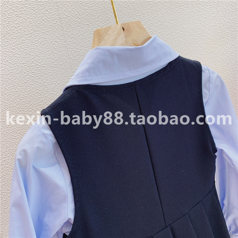Осенняя рубашка, платье без рукавов, комплект, детская одежда, 2020 года, рукава фонарики