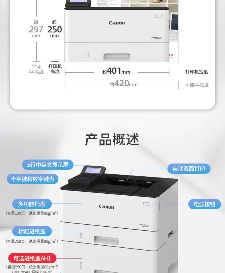 Canon (Canon) A4 Однопроизводимый однофункциональный черно -белый лазерный принтер LBP2222DN (автоматическая двойная печать)
