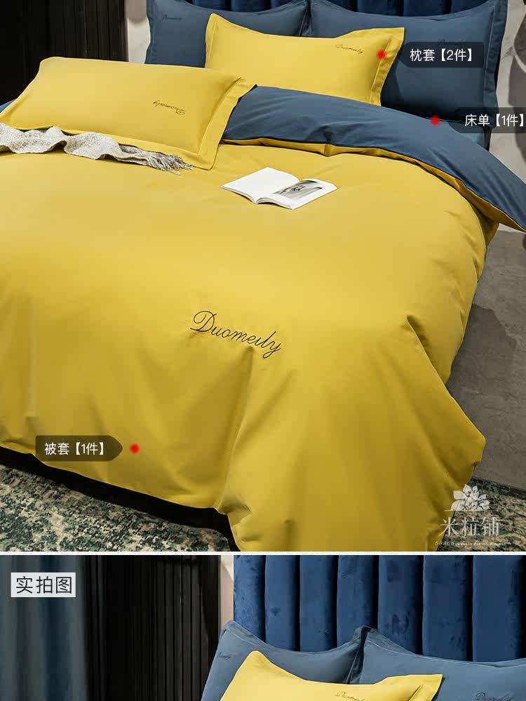 Современный хлопковый комплект, хлопковое удерживающее тепло одеяло, пододеяльник, демисезонное покрывало, простой и элегантный дизайн, 100 шт, 4 предмета, увеличенная толщина