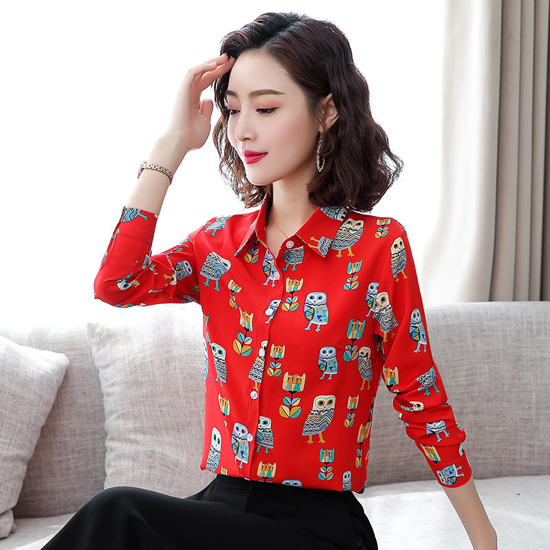 Шифоновая осенняя красная рубашка для матери, 2020 года, в западном стиле