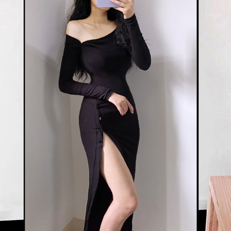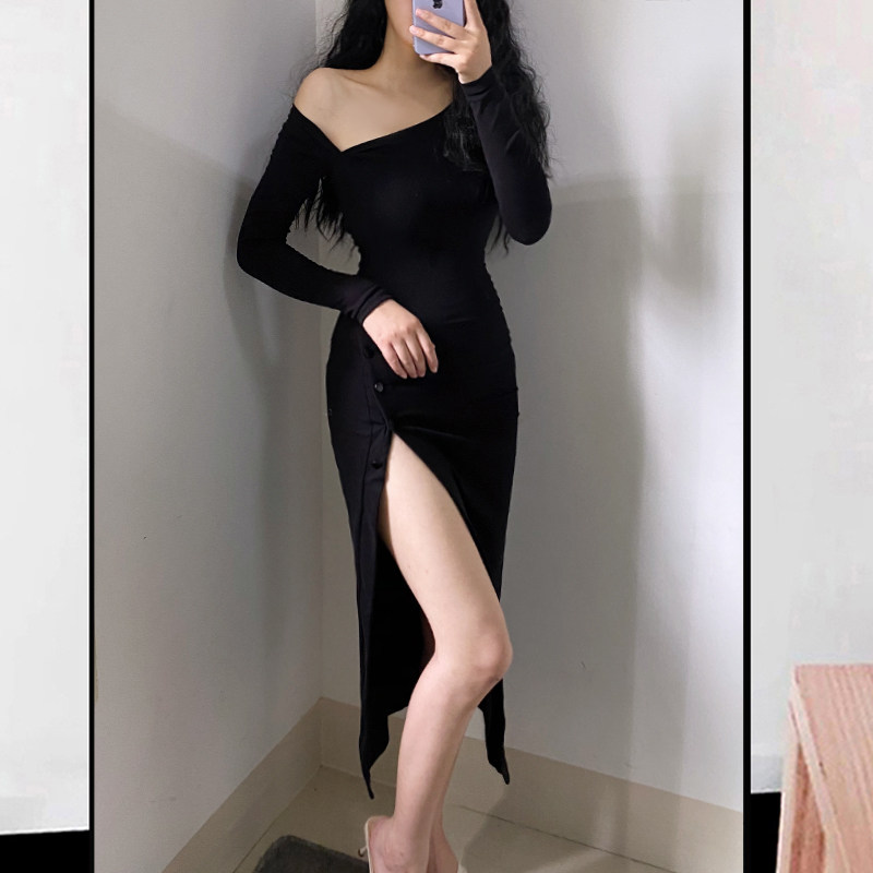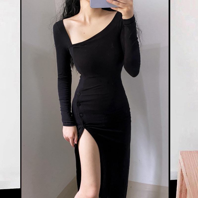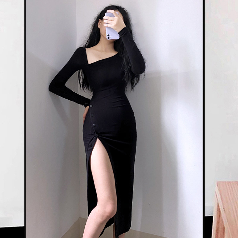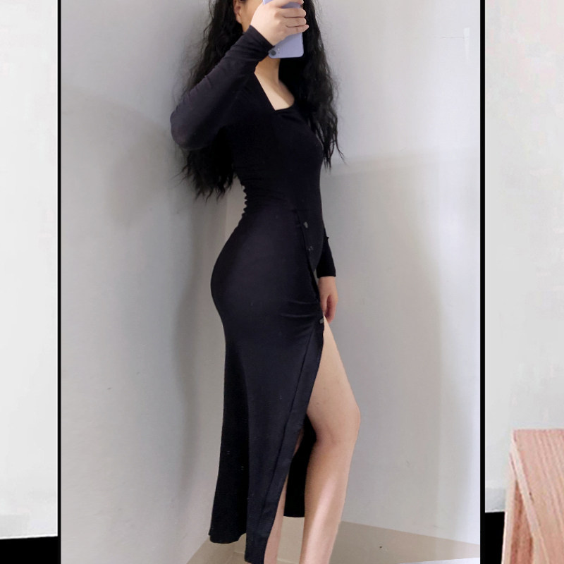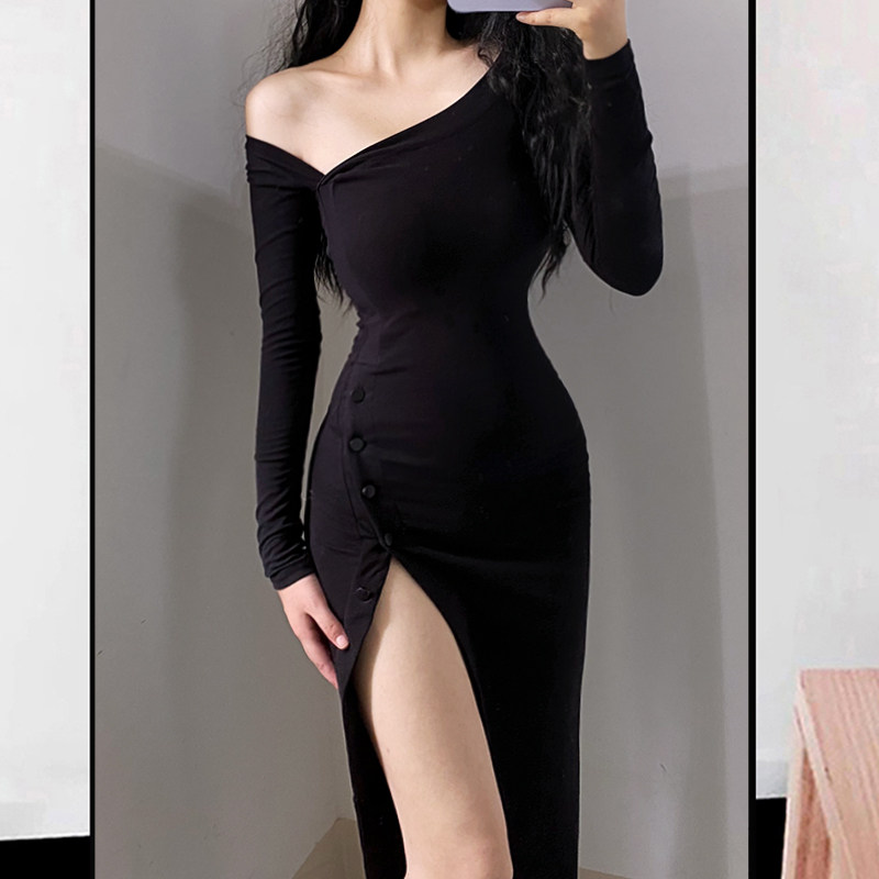 Сексуальный лонгслив, длинное платье, коллекция 2022, европейский стиль, с акцентом на бедрах, в обтяжку