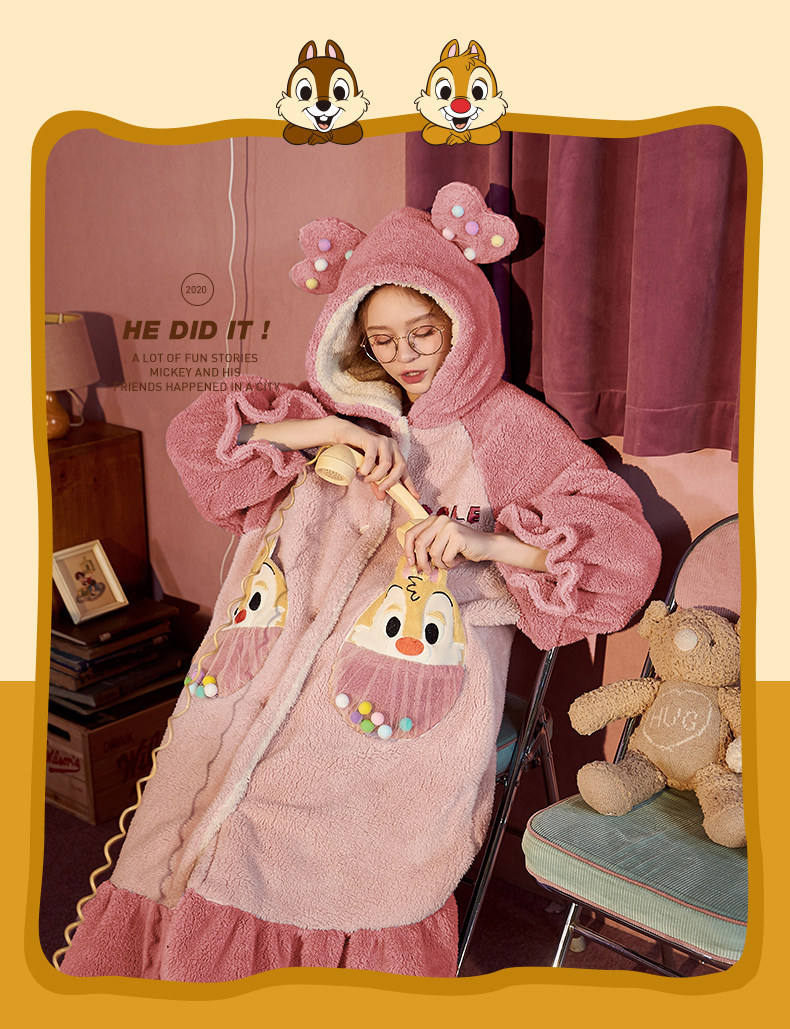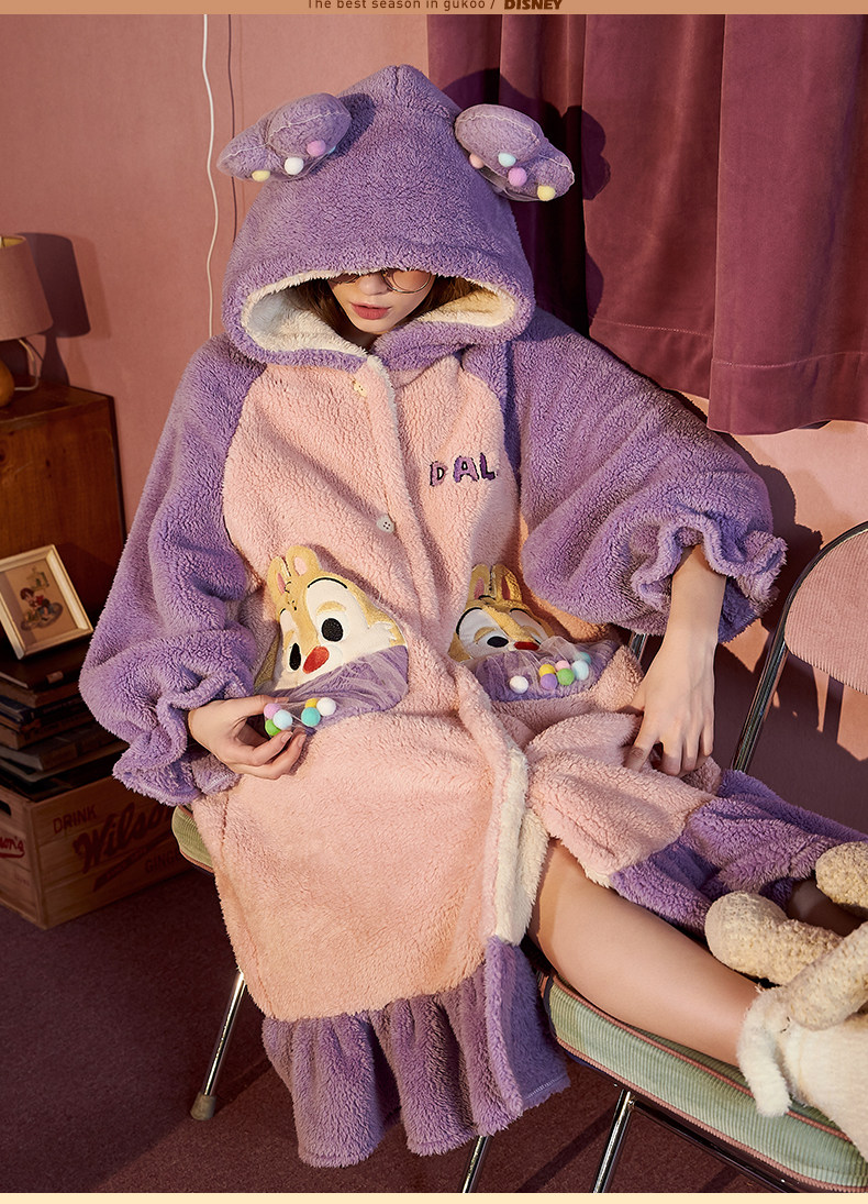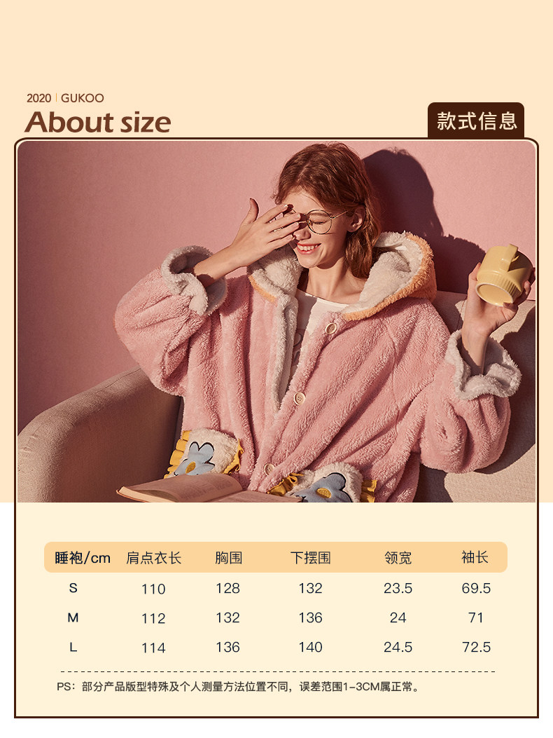Gukoo/果壳 Зимняя пижама, коралловый бархатный мультяшный зимний фланелевый банный халат