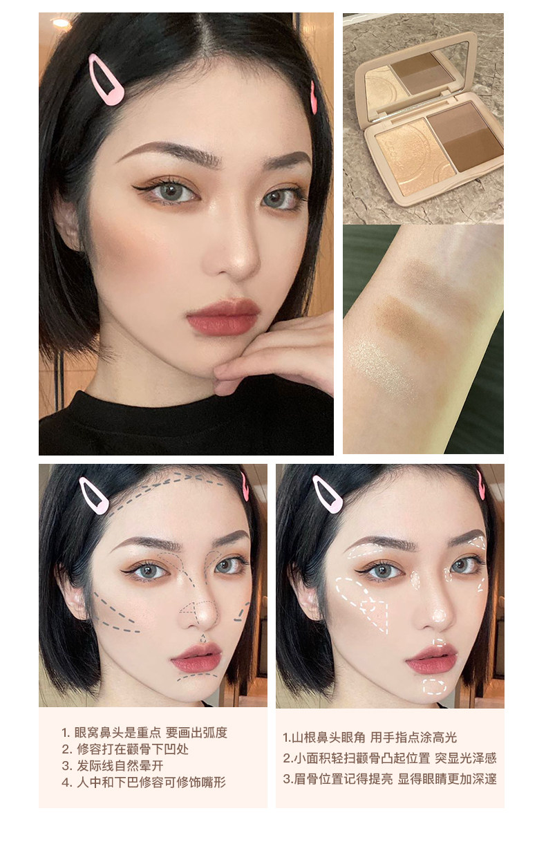 Хайлайтер, румяна для контуринга, матовая тени для век, комплект, «три в одном»
