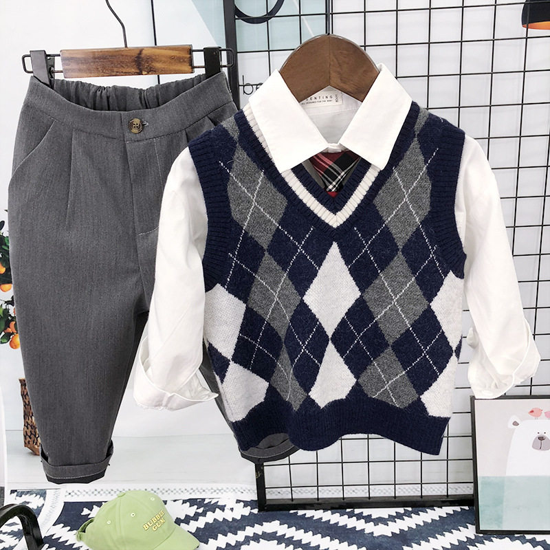 Детский осенний трикотажный шерстяной жилет для мальчиков, в корейском стиле, 1-8 лет, в западном стиле