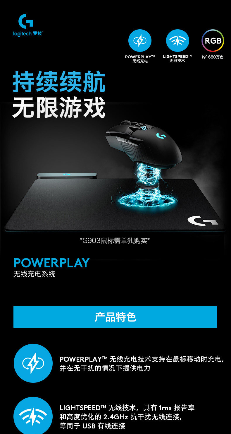 Logitech G Powerplay Mouse Pad Bads Base Base System подходит для G903 /GPW 2 -е поколение /G502