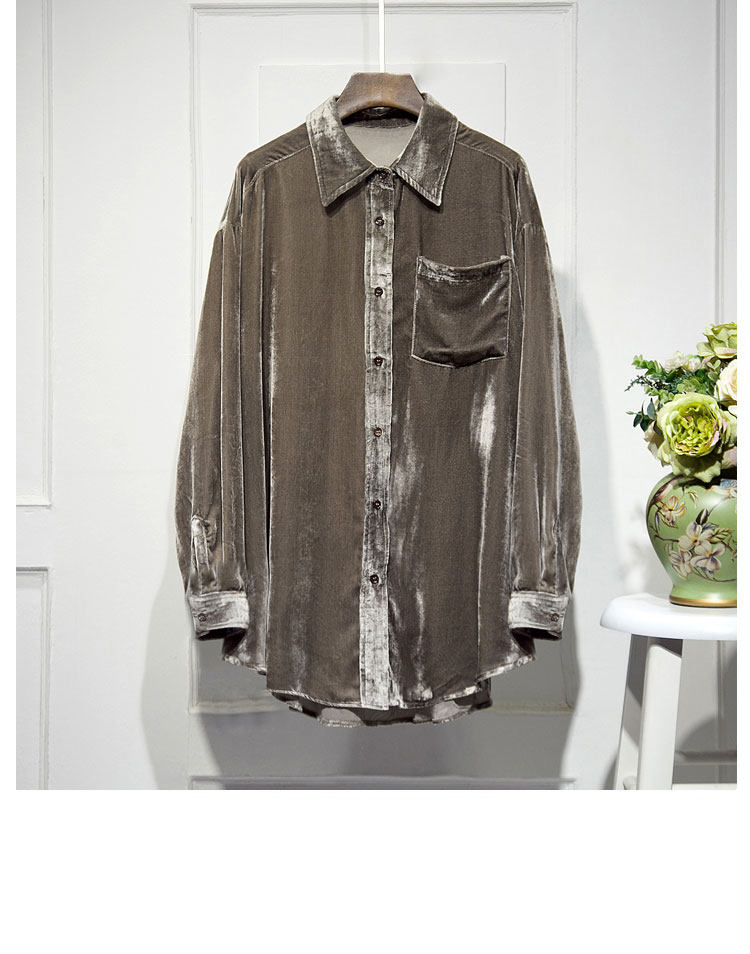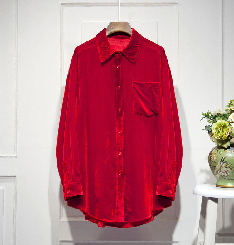 Осенний длинный бархатный лонгслив, утеплённая рубашка, средней длины, оверсайз