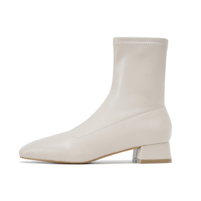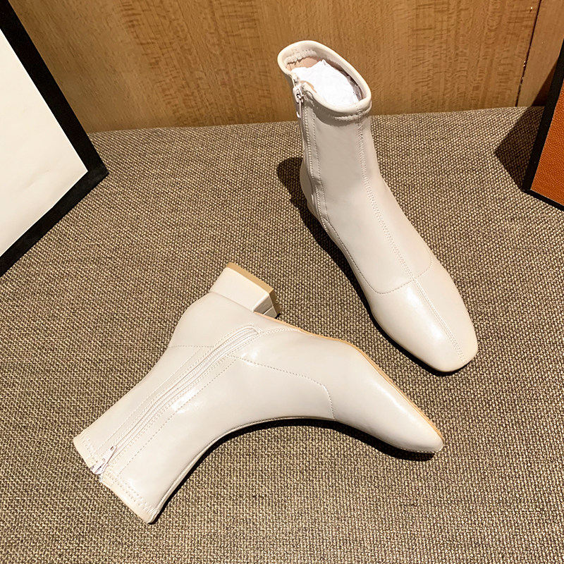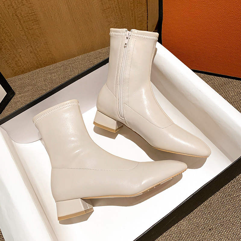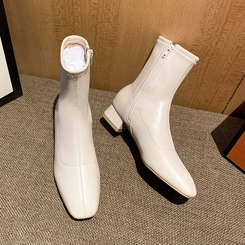 Белые короткие сапоги Yaguan высотой 3 см для женщин весной и осенью, универсальные узкие ботинки на толстом каблуке с квадратным носком для женщин, французские сапоги, женские сапоги до середины икры