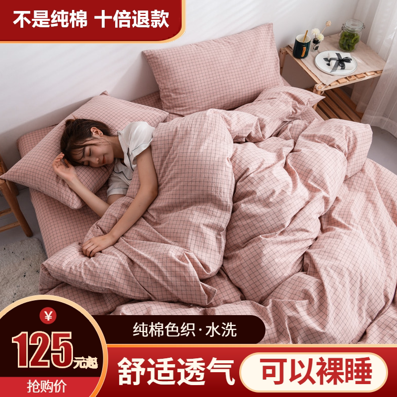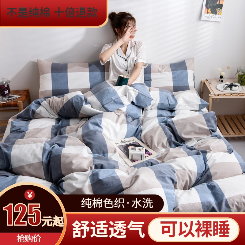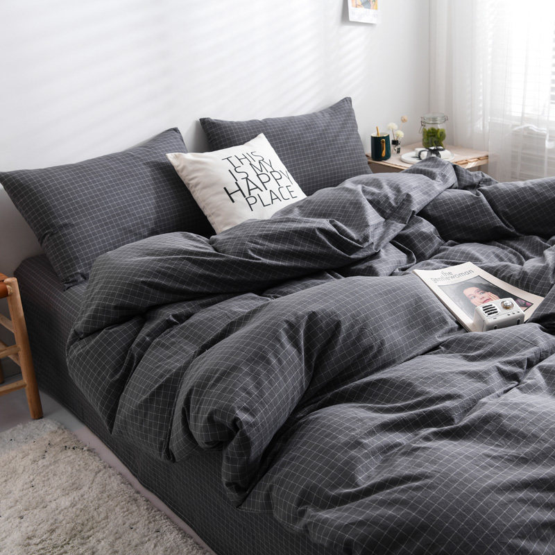 Хлопковый комплект, покрывало, простыня, пододеяльник для школьников и студентов, простой и элегантный дизайн, скандинавский стиль, 4 предмета, 3 предмета