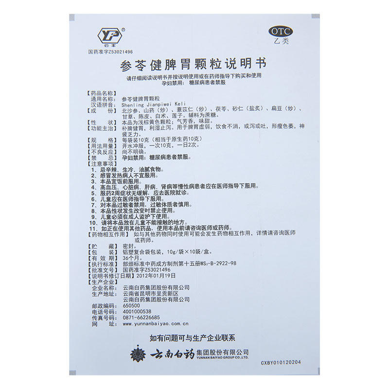 云丰 Шенлинг -селезенка и гранулы желудка 10 мешков селезенки и желудка слабая селезенка и желудок, дефицит селезенки и расстройство желудка, диета, без рвота и ци