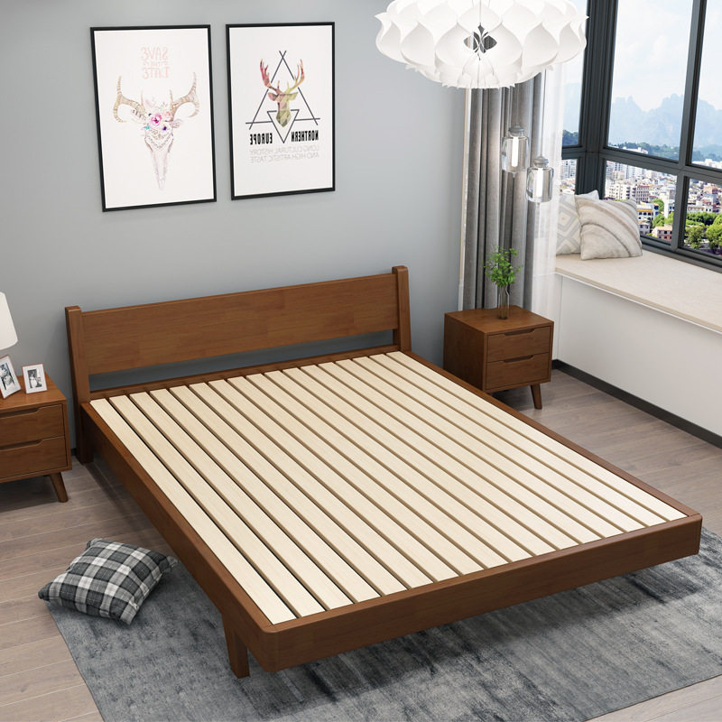 Северная сплошная деревянная кровать главная спальня 1,8 м1,5 м Экономика -Стиль Японский Простой современный двойник с мягкой свадебной кроватью
