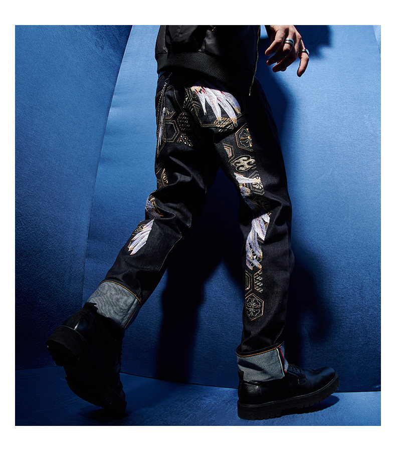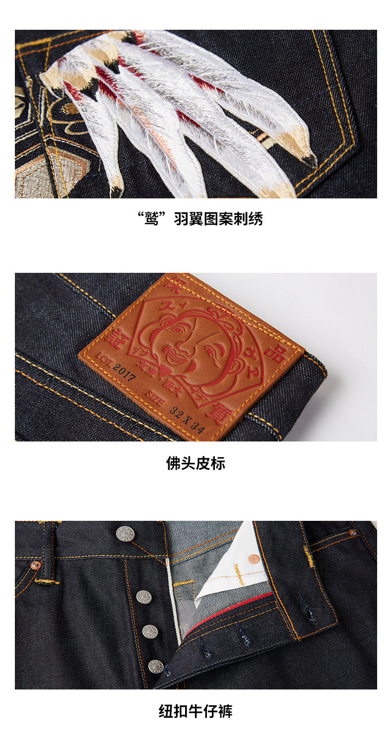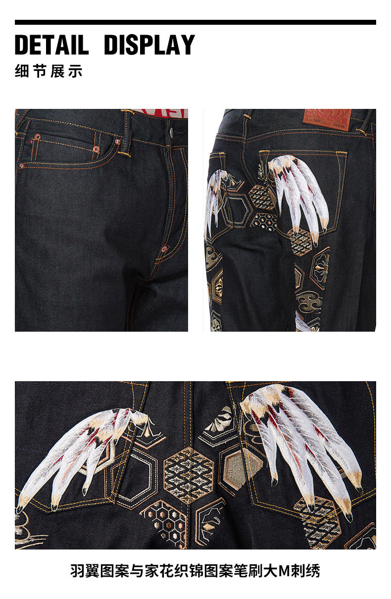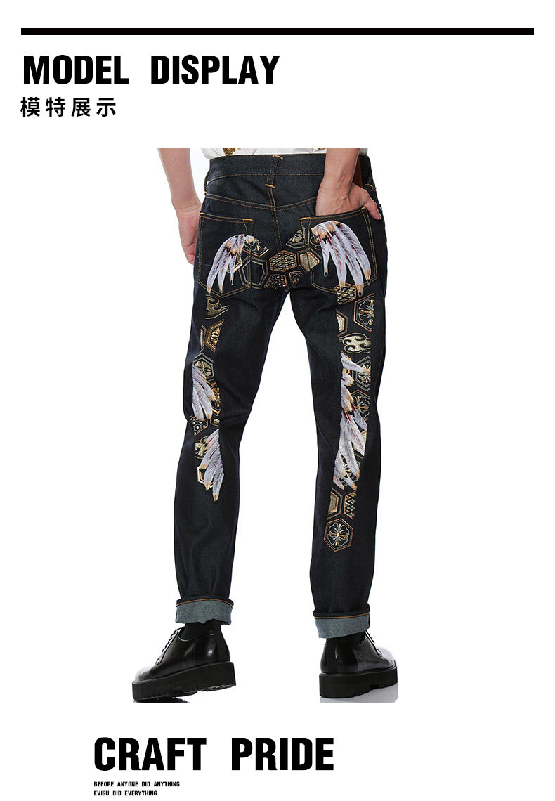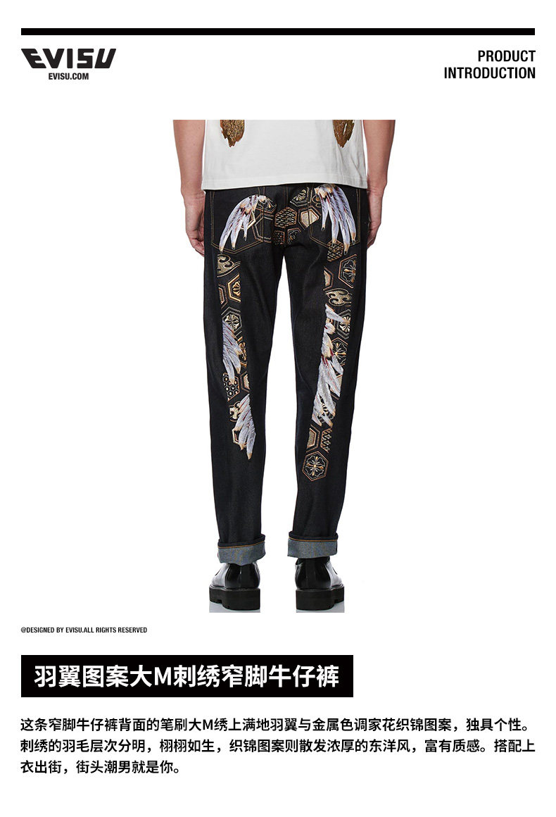 Evisu 20AW Men's Wings Pattern Большая M Emelcodery Clock -Foot Jeans 2EAHTM0JE92017