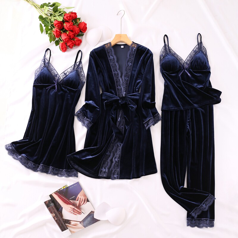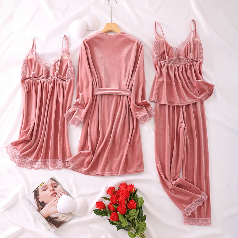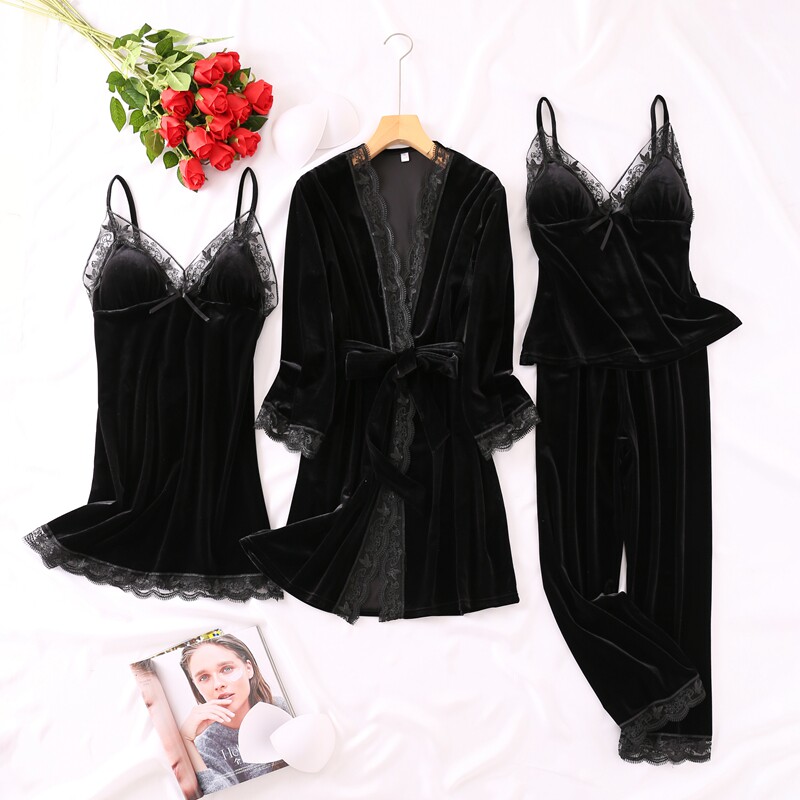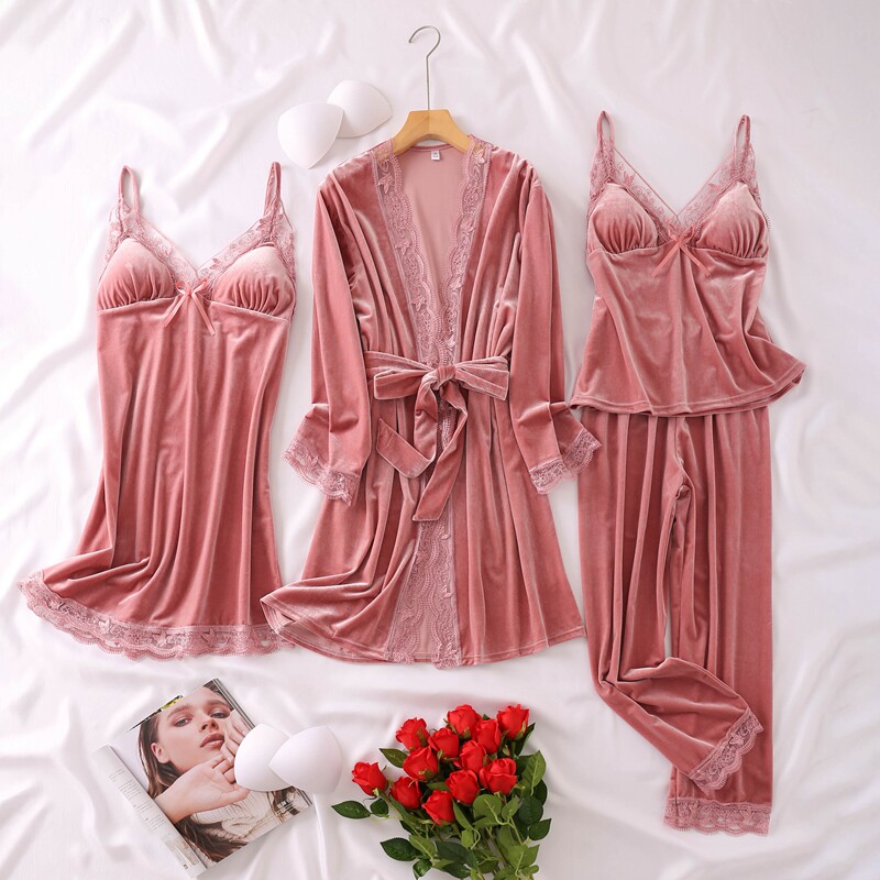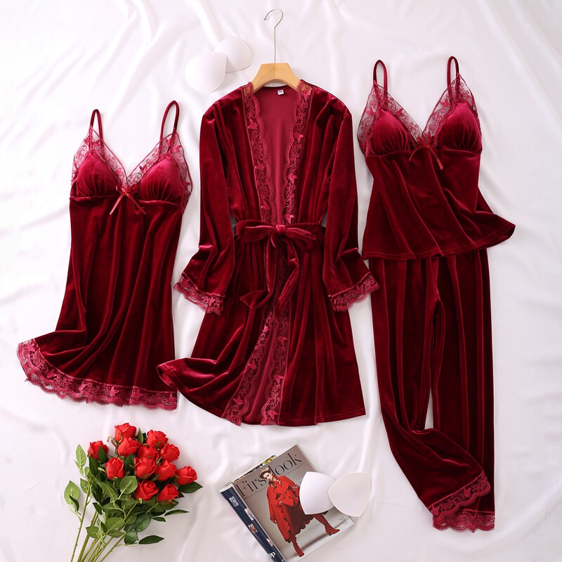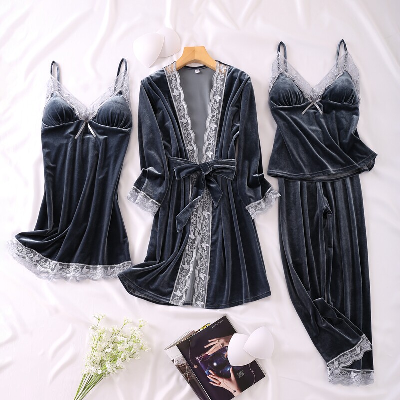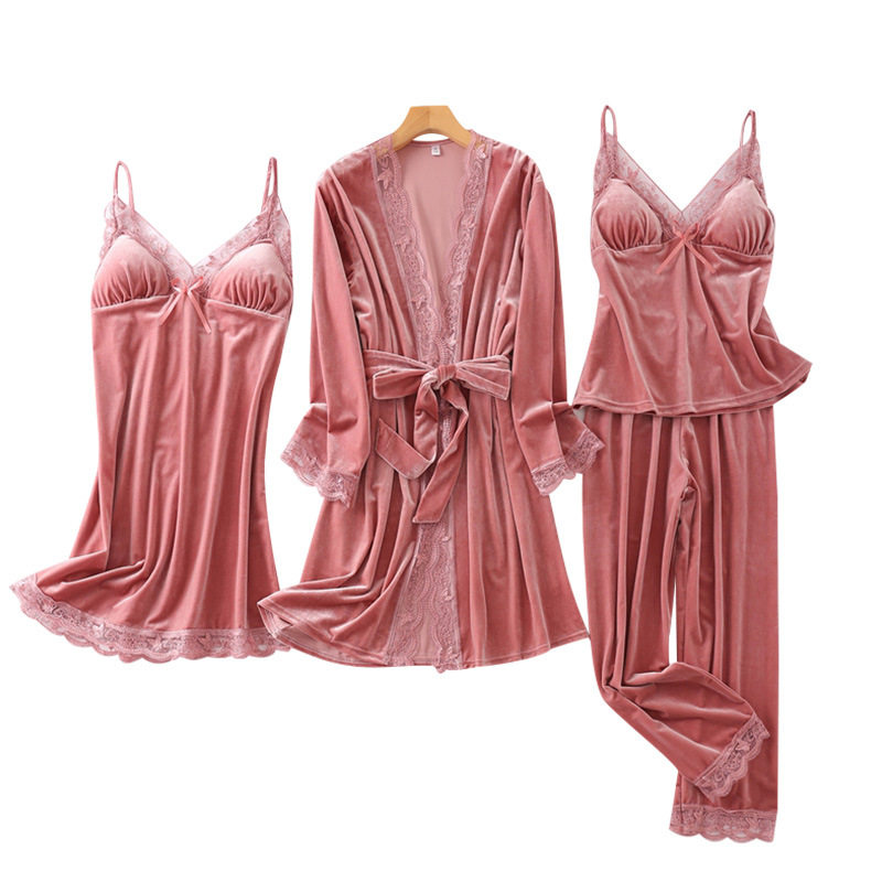 Весенняя летняя сексуальная пижама, бархатный топ с чашечками, комплект, эффект подтяжки, 4 предмета, популярно в интернете