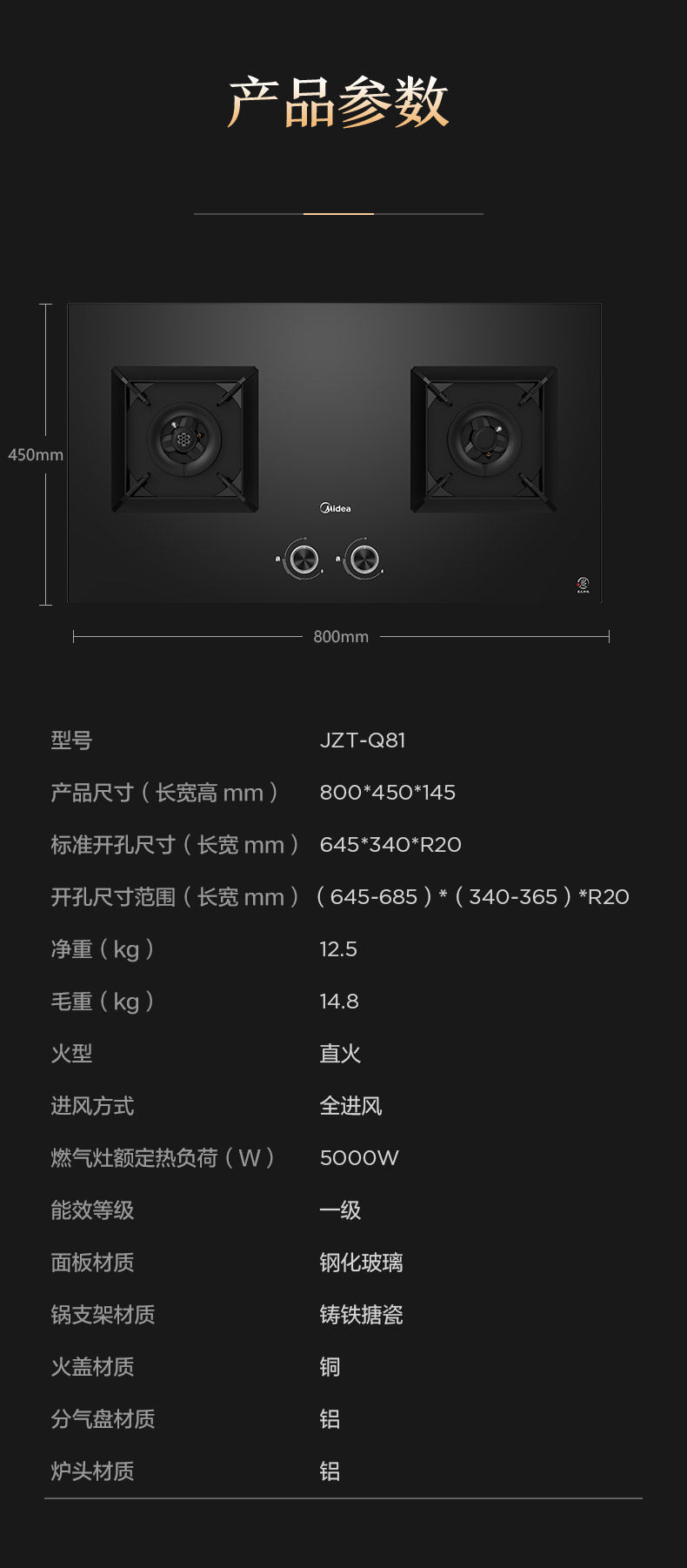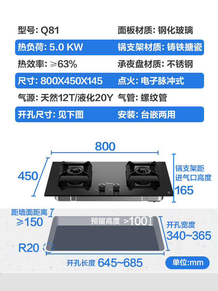 Midea Q81 Газовая плита природная газа двойная плита домашняя кухонная плита столовая столовая встроенная двухподобная настольная агломерация.