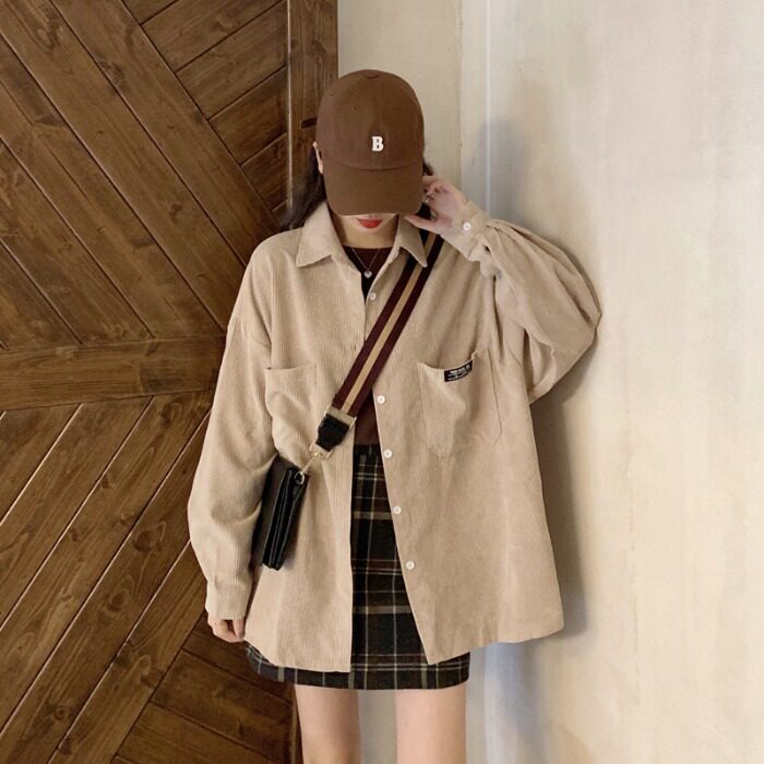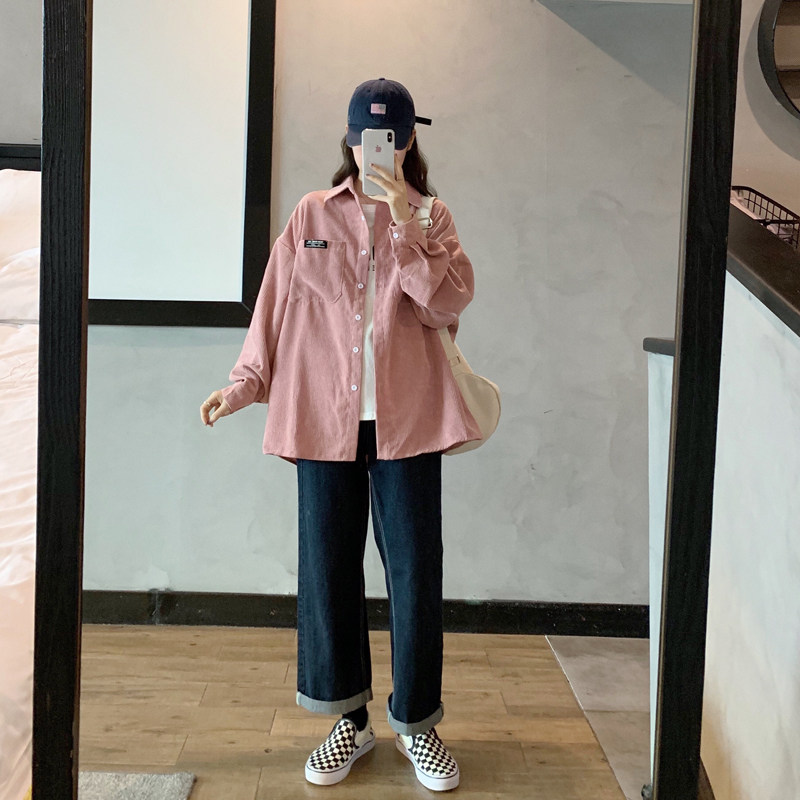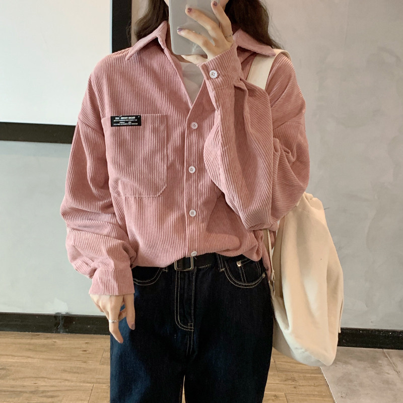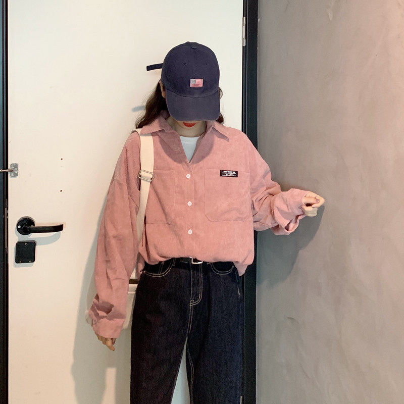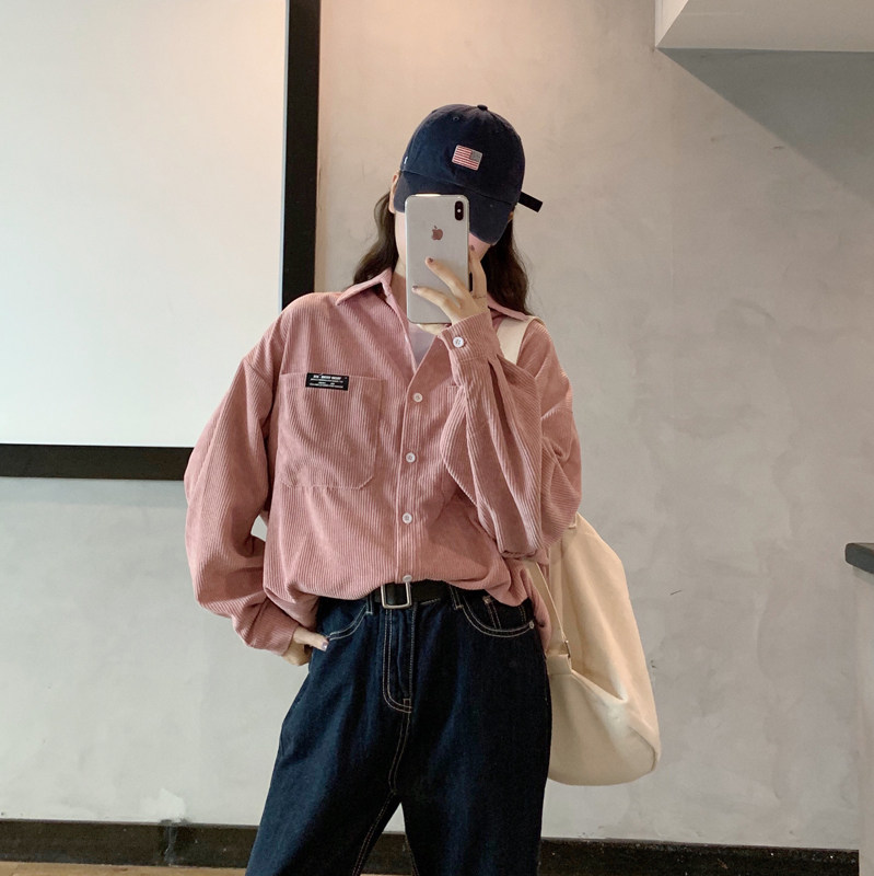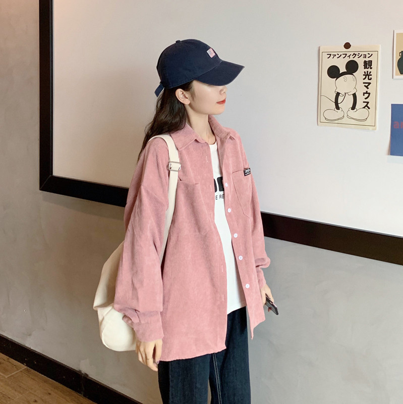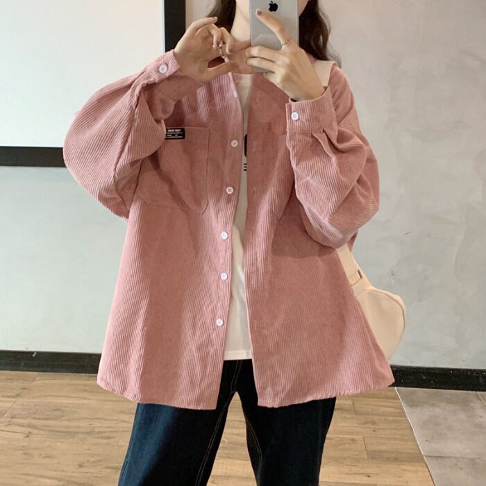 Розовая весенняя ретро вельветовая рубашка, куртка