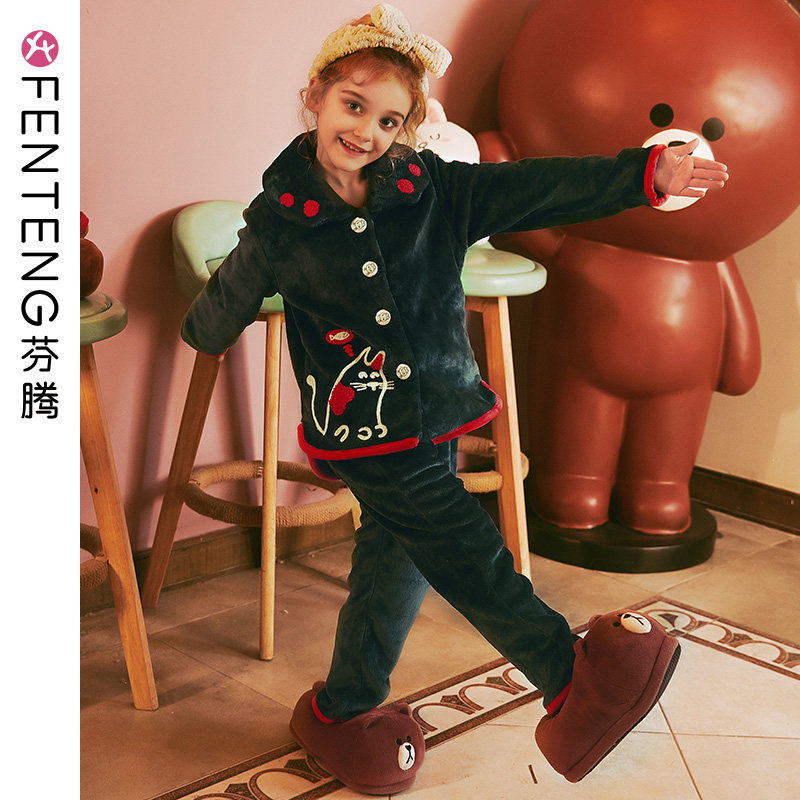 芬腾 Демисезонная коралловая бархатная зимняя пижама, фланелевый комплект, увеличенная толщина, подходит для подростков