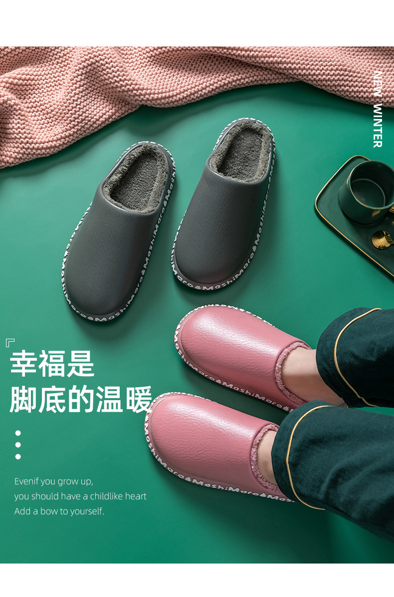 Мужские полиуретановые зимние тапочки для влюбленных, удерживающая тепло нескользящая демисезонная обувь