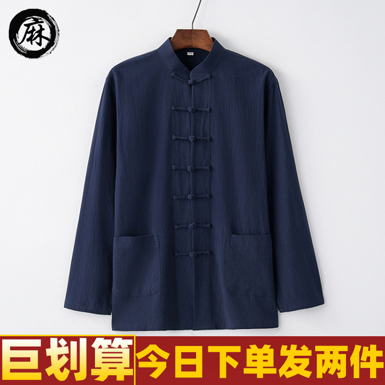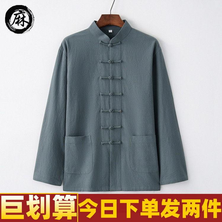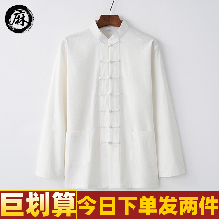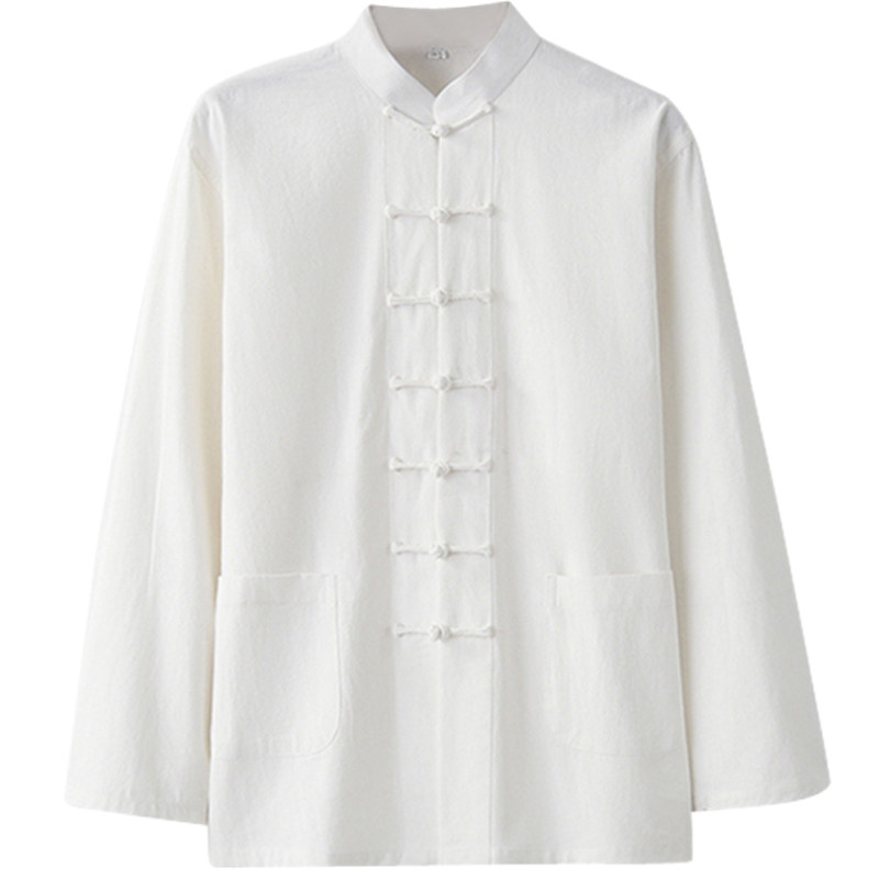 Лонгслив, ретро ханьфу, рубашка, из хлопка и льна, китайский стиль, для среднего возраста