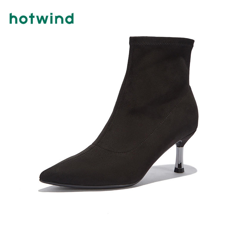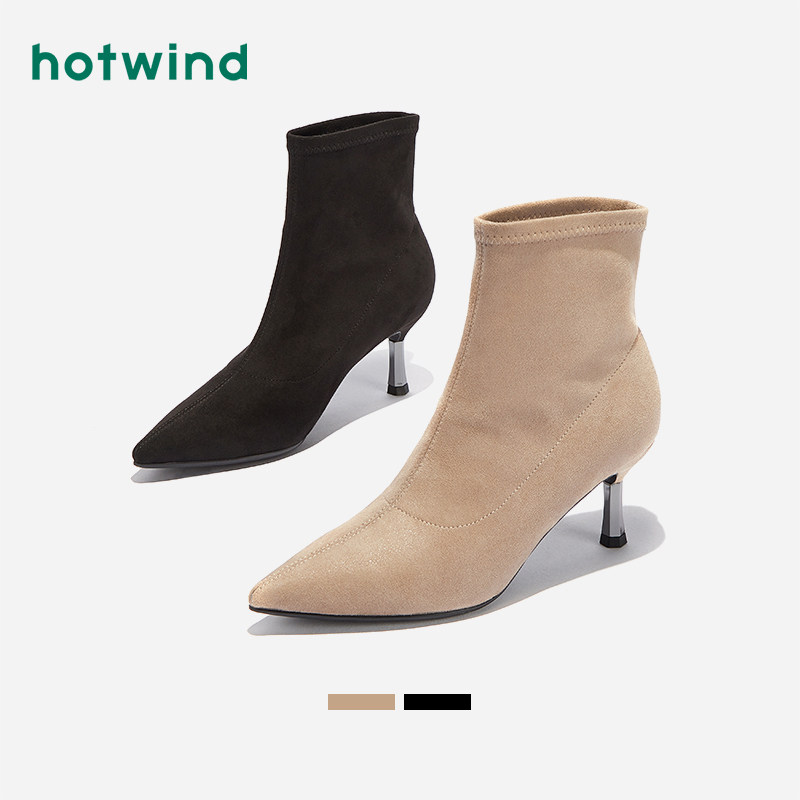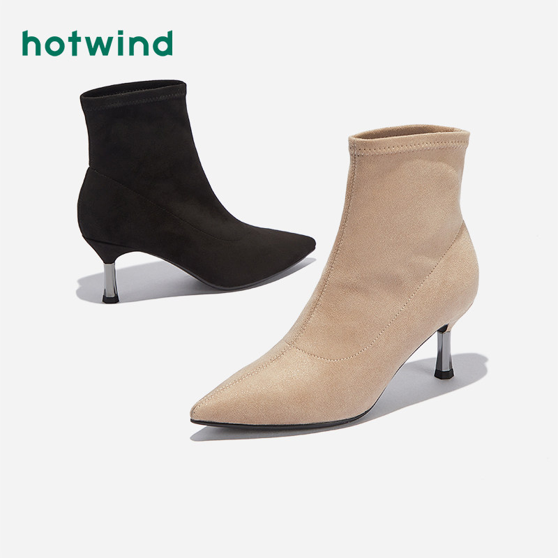 Hotwind/热风 Зимние туфли на высоком каблуке, короткие сапоги, 2020, в корейском стиле