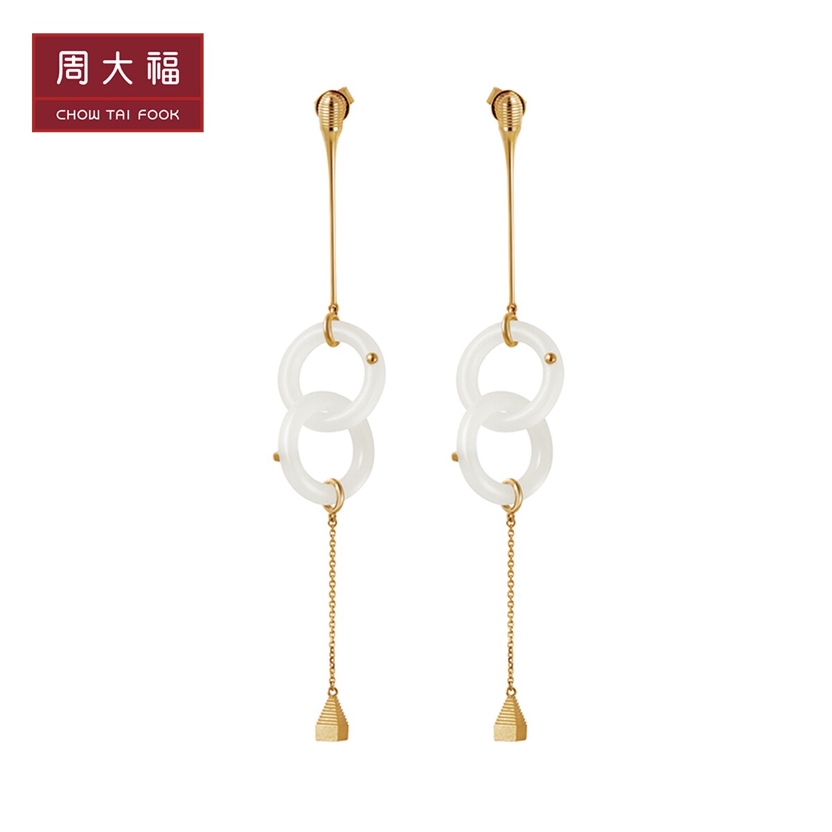 周大福 Ювелирные изделия встречаются с красотой, серия «Небо и земля, мир», модная золотая инкрустированная нефритовая проволока для ушей V116900, выбор подарка