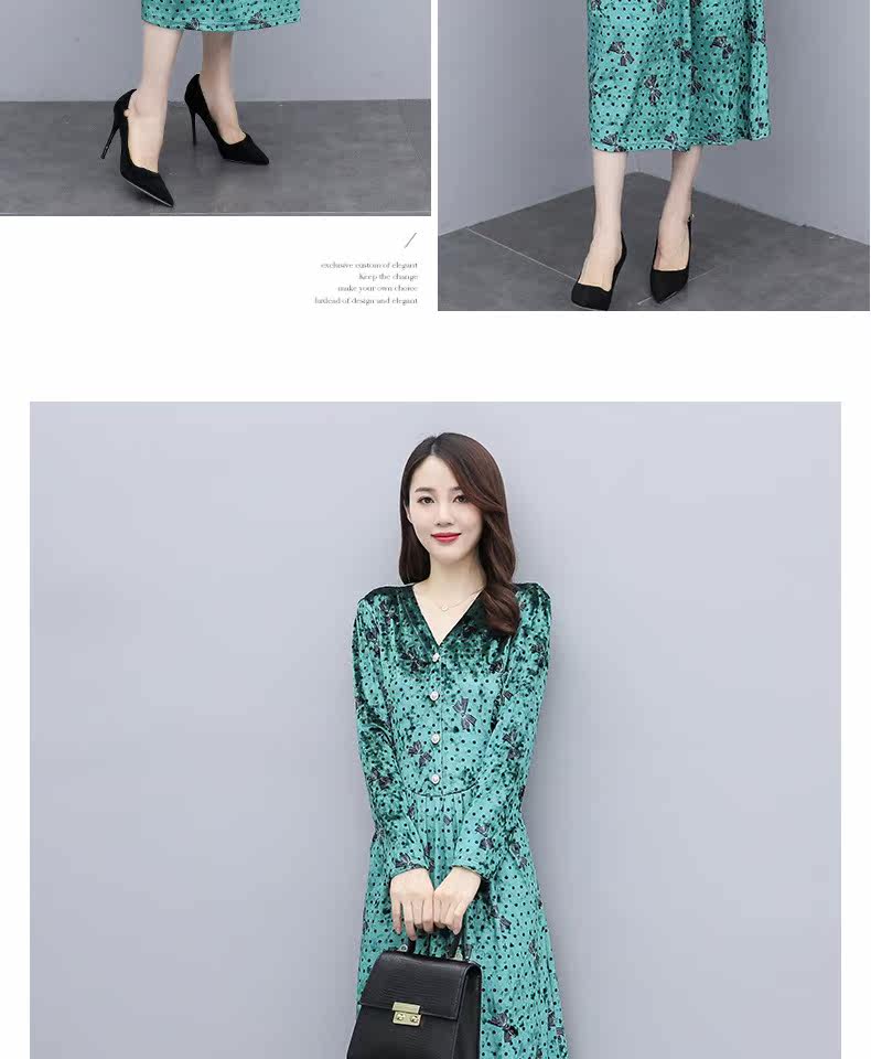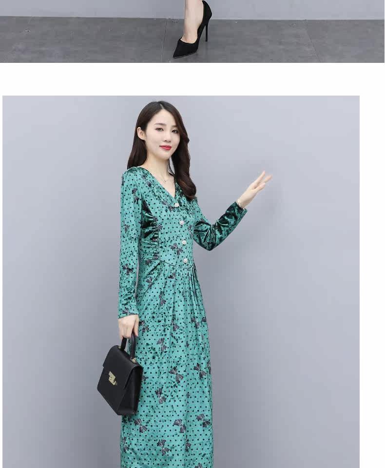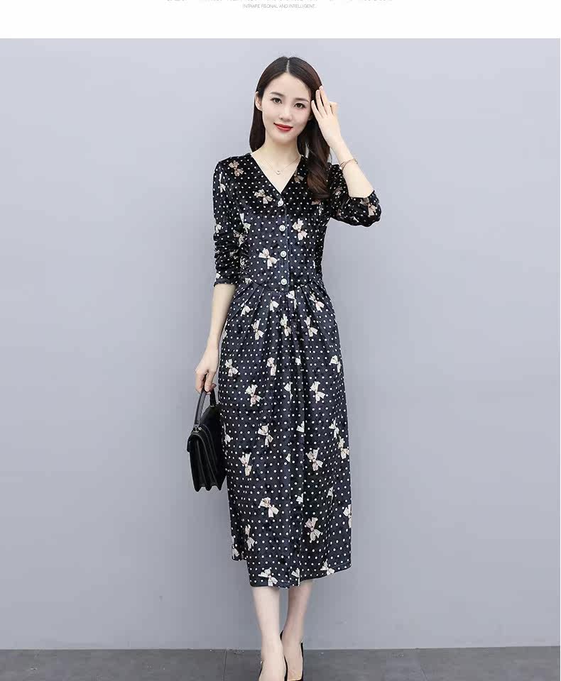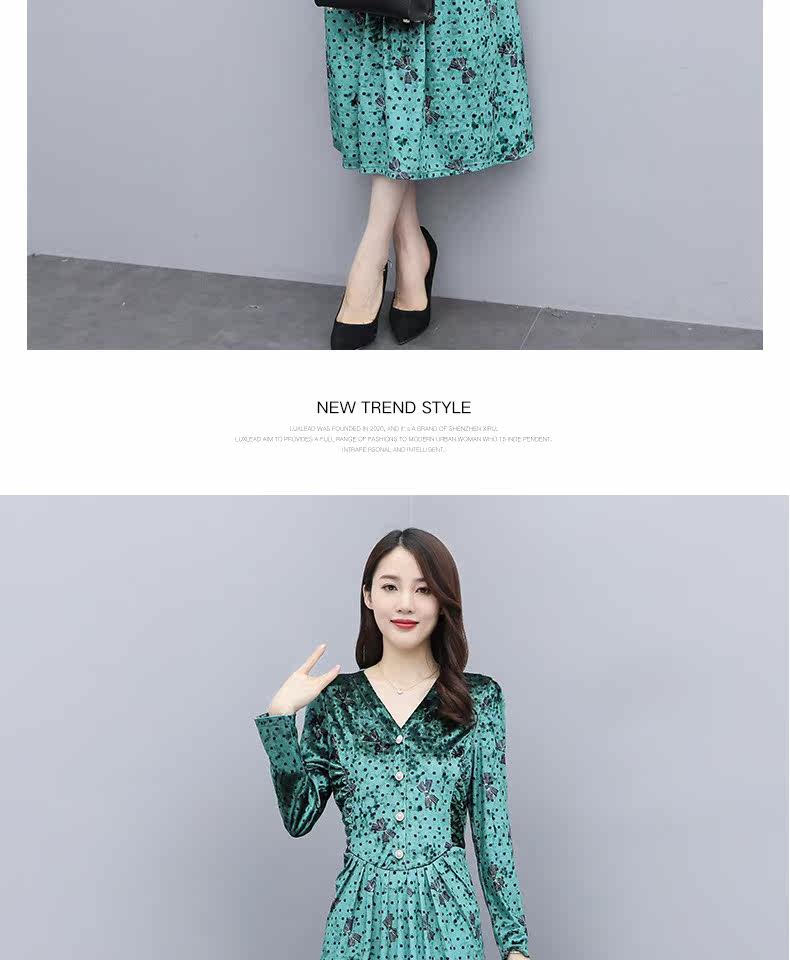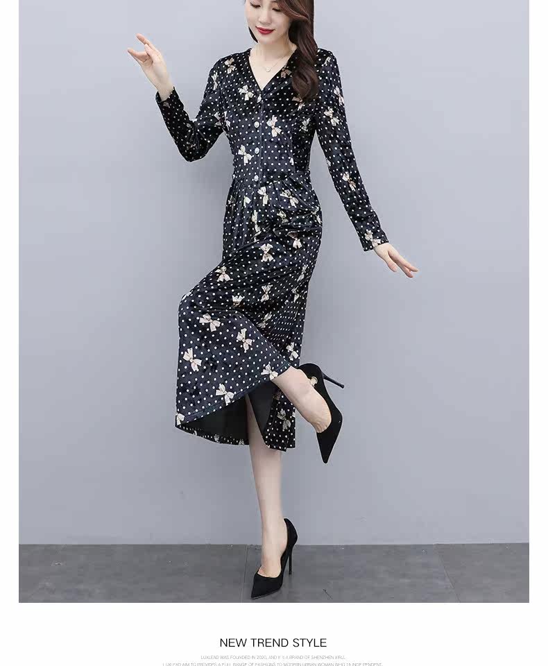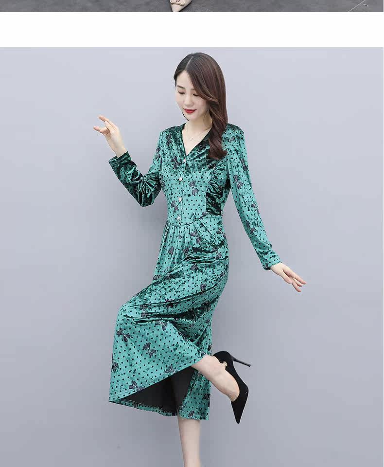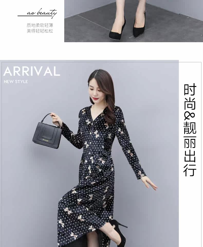 Бархатное демисезонное элитное платье, в цветочек, 2020, в западном стиле
