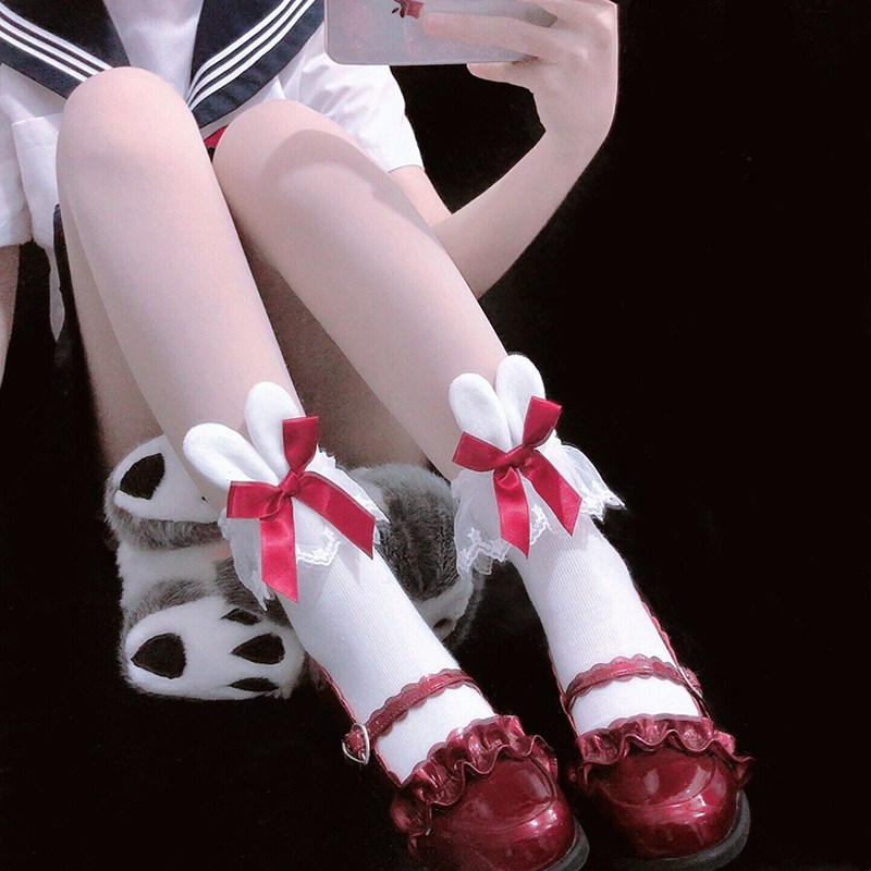 Японские хлопковые милые носки с бантиком, стиль Лолита