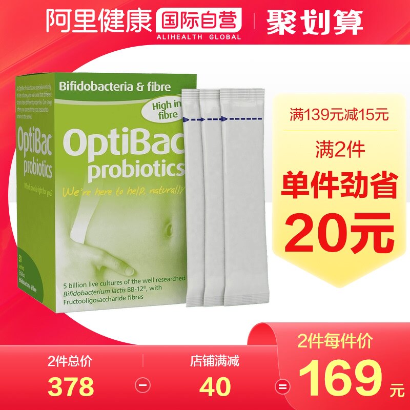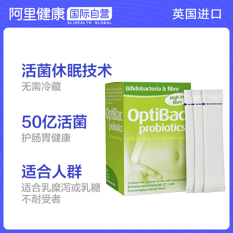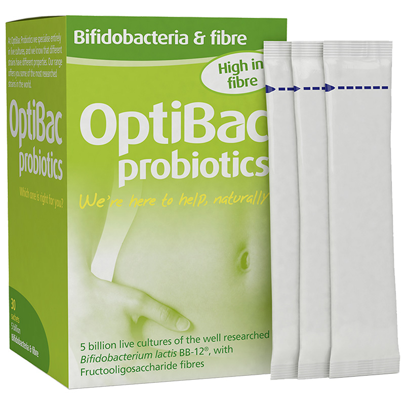 Пробиотики пробиотики Optibac Bisidobacterium, кишечные тракты с высоким содержанием диетического волокна Увлажняющий гребля кишечника, 30 мешков