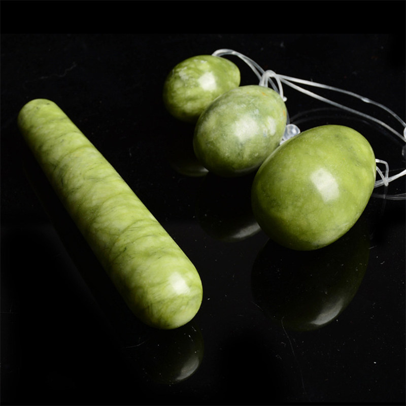 Природная зеленая нефритовая яйца сет