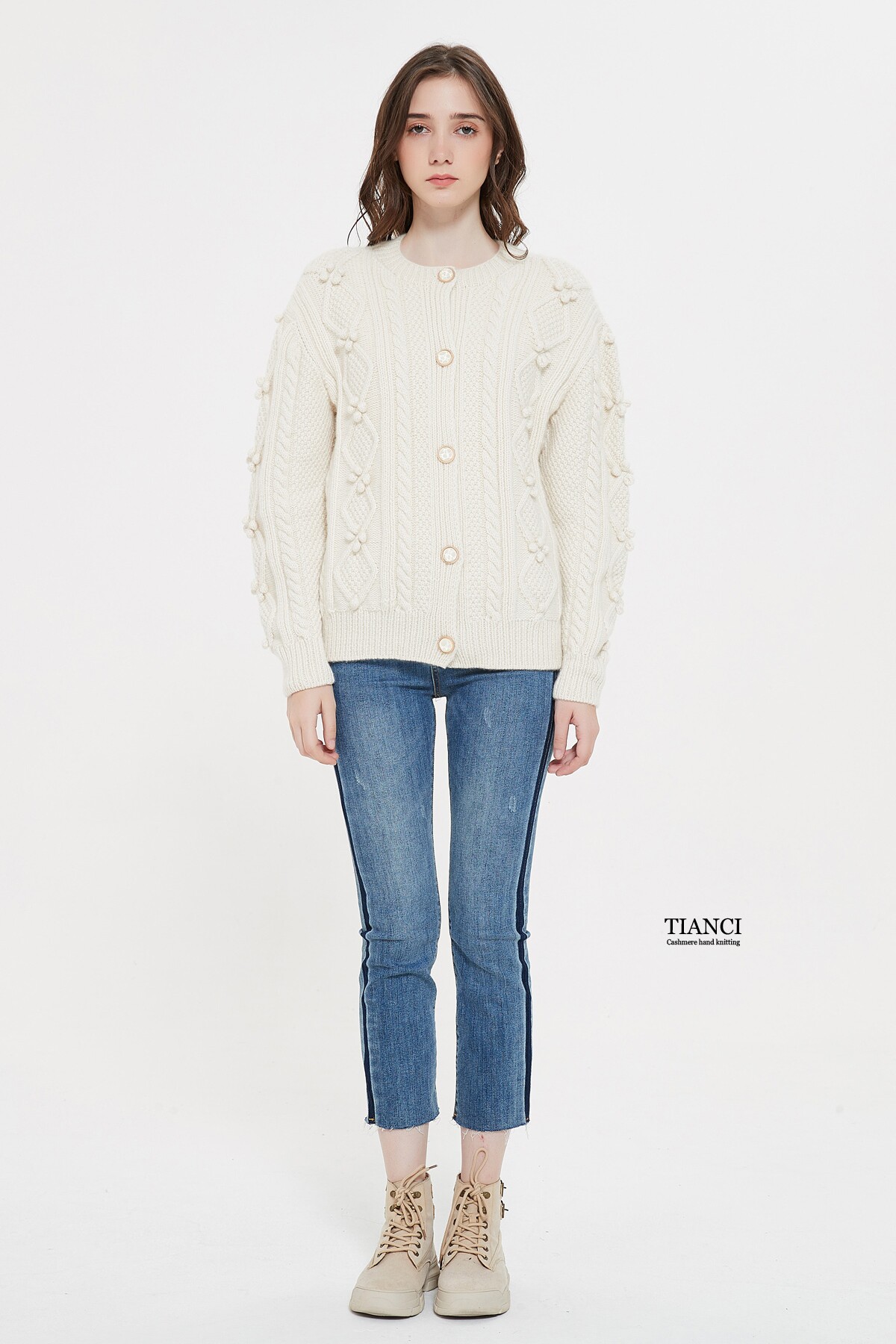 Классический белый кашемировый плетеный кардиган ручной работы, свитер, трикотажная булавка, куртка, увеличенная толщина, оверсайз