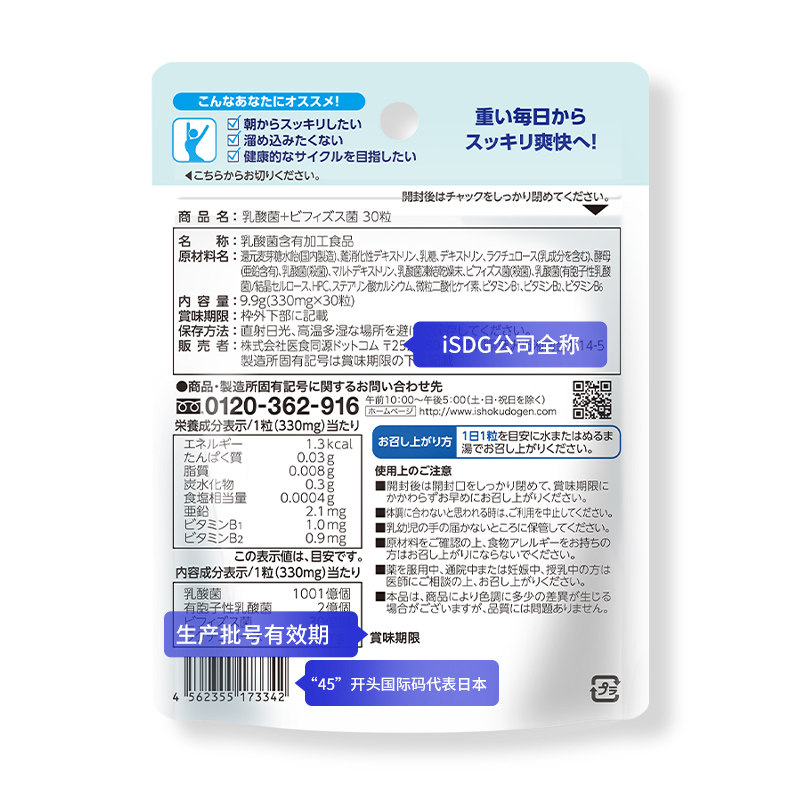 ISDG Япония импортированные молочных кислотных бактерий бизидобактерий пробиотические пробиотики гранулы четкая детоксикация кишечника и сильные иммунные 30 таблетки