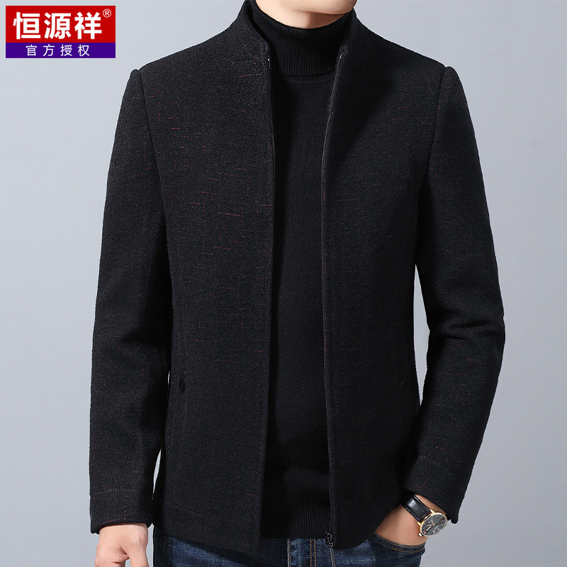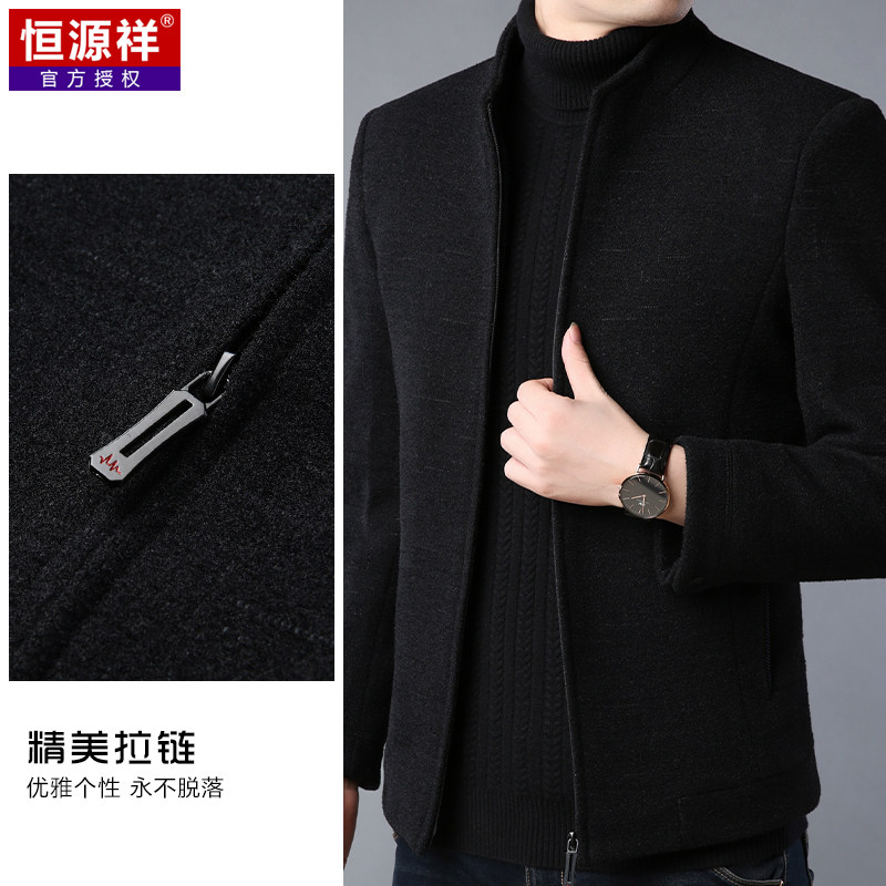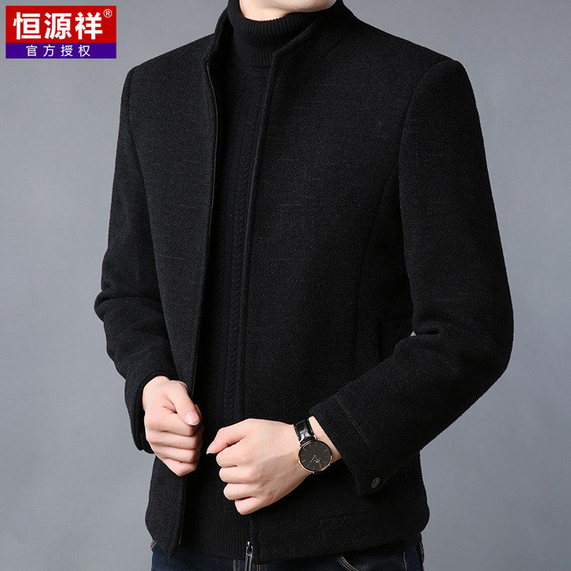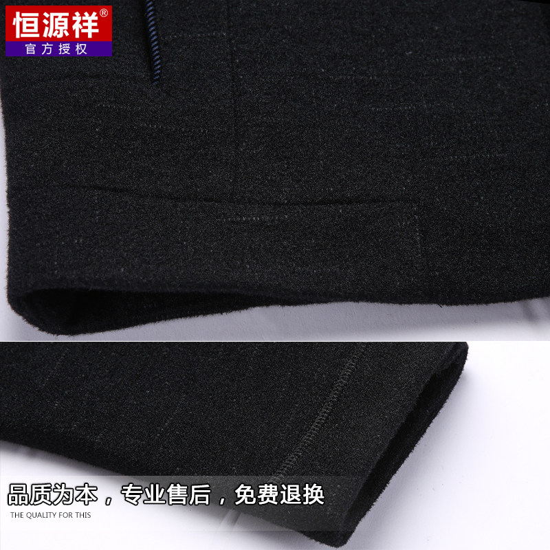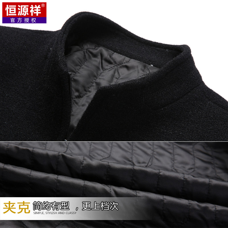 恒源祥 Мужское демисезонное шерстяное пальто, куртка, для мужчины среднего возраста, увеличенная толщина