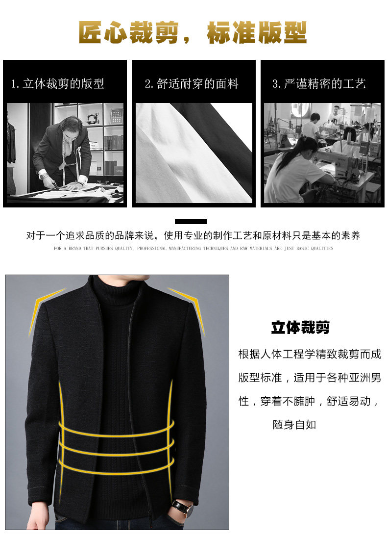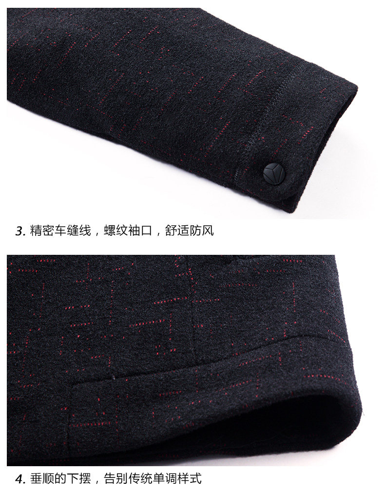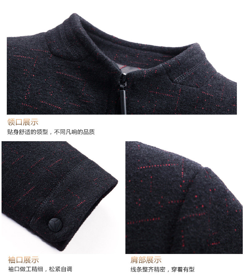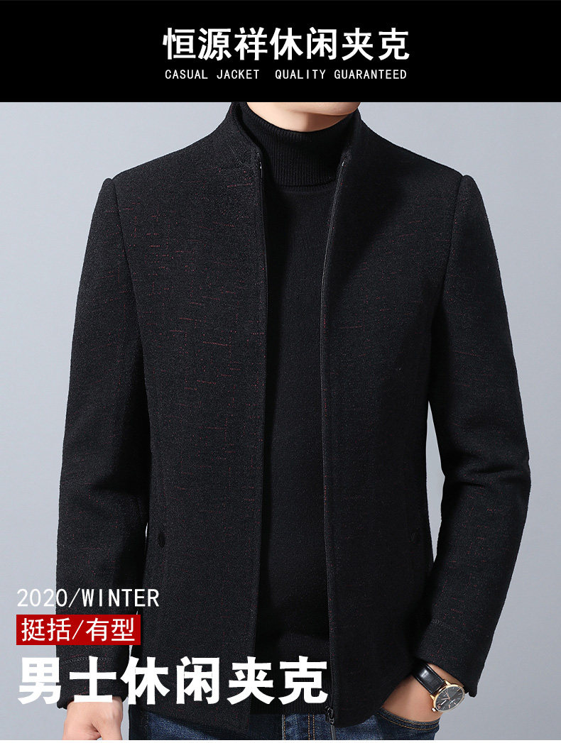 恒源祥 Мужское демисезонное шерстяное пальто, куртка, для мужчины среднего возраста, увеличенная толщина