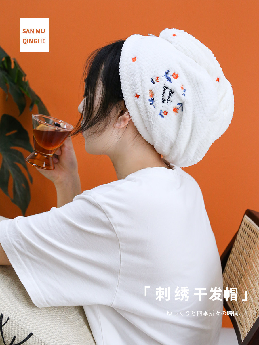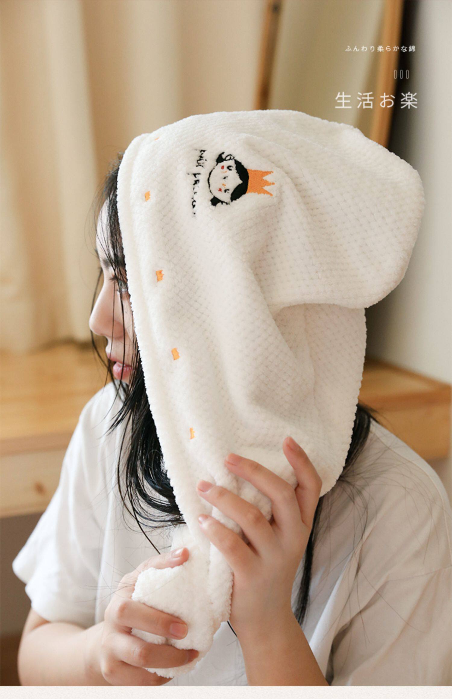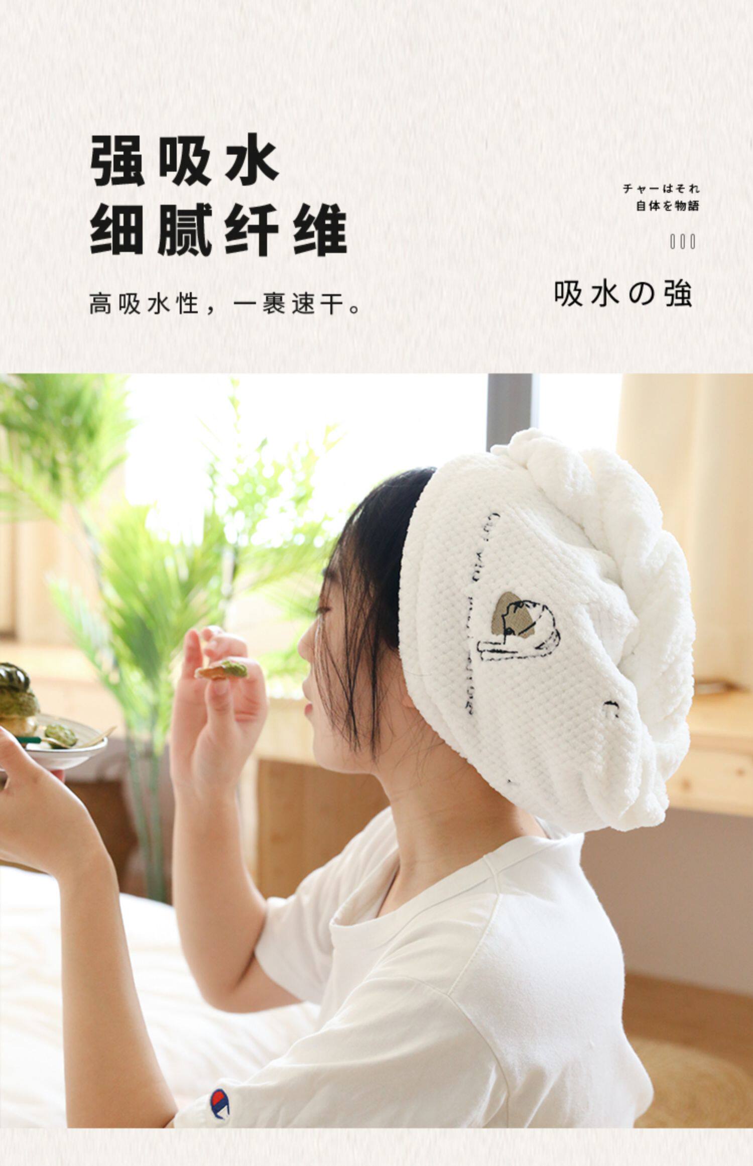 Оригинальное быстросохнущее милое японское полотенце для волос, шапочка для душа, платок, хорошо впитывает воду, с вышивкой