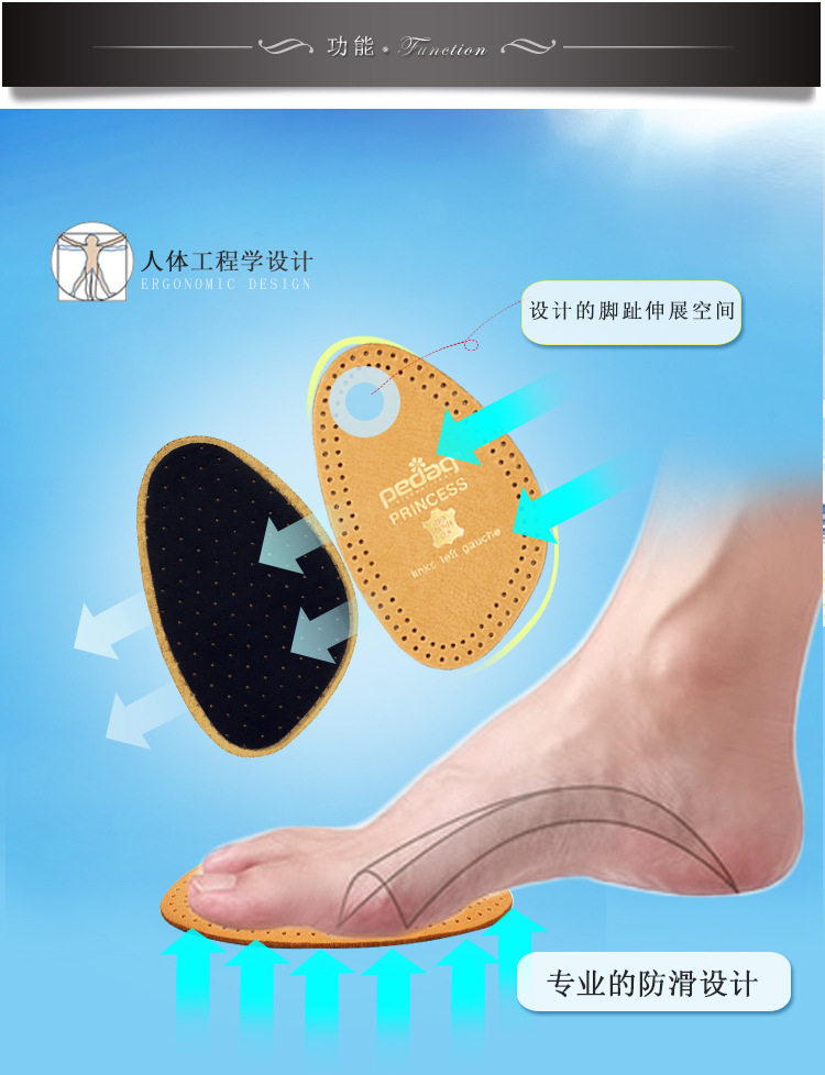 Нескользящие противоболевые полустельки, туфли на высоком каблуке, стельки, из натуральной кожи