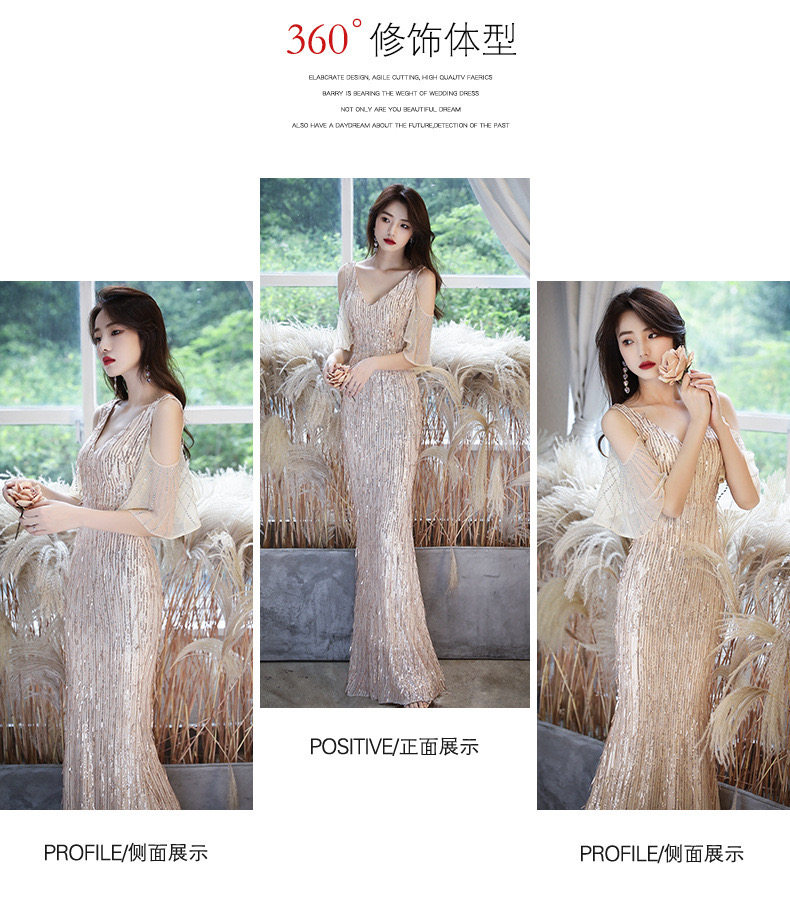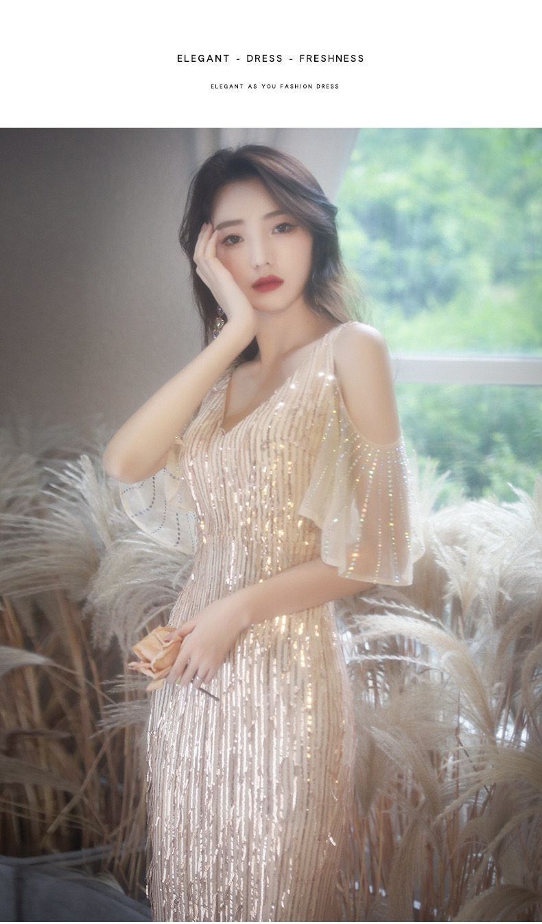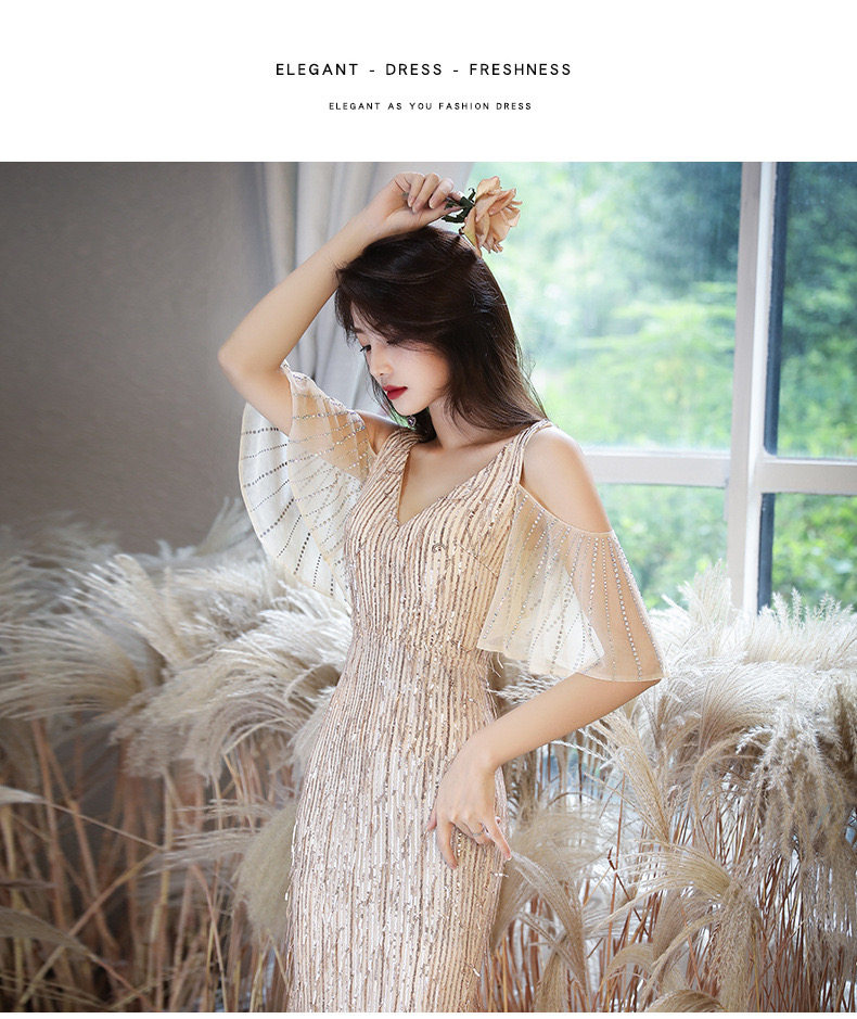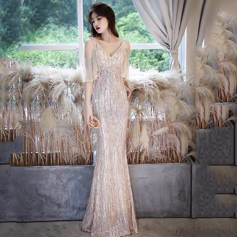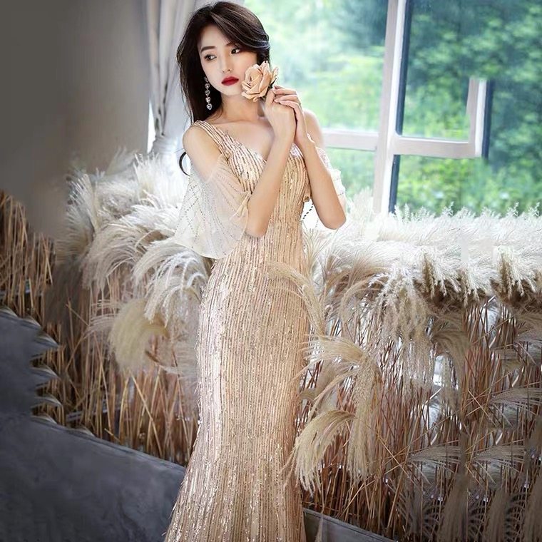 Золотое вечернее платье, коллекция 2021, городской стиль, крой «рыбий хвост»