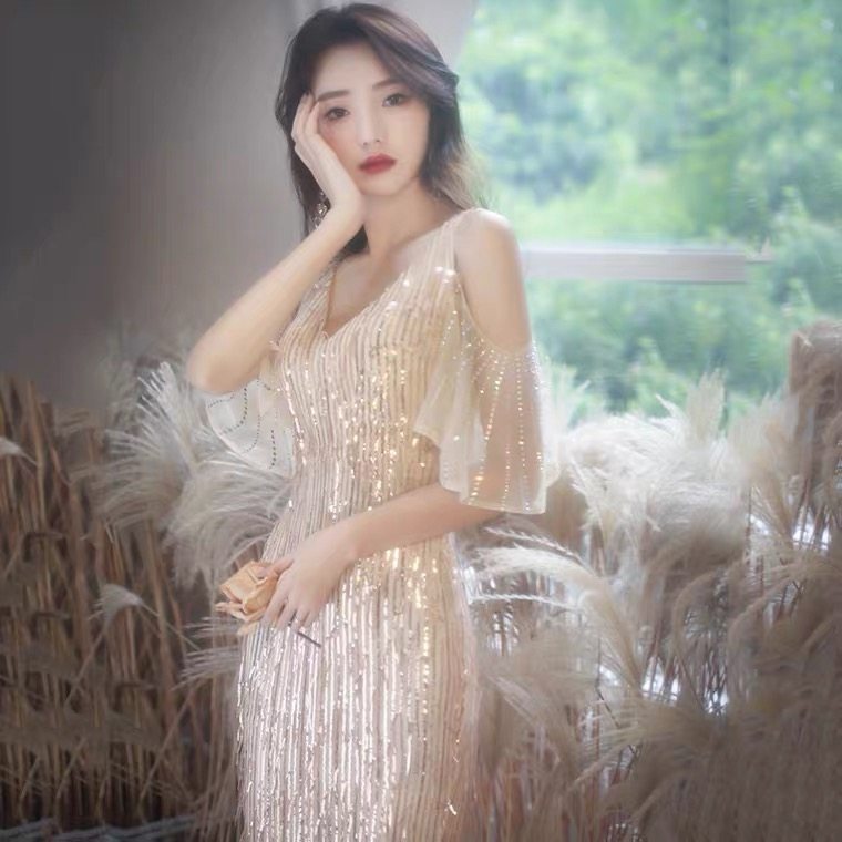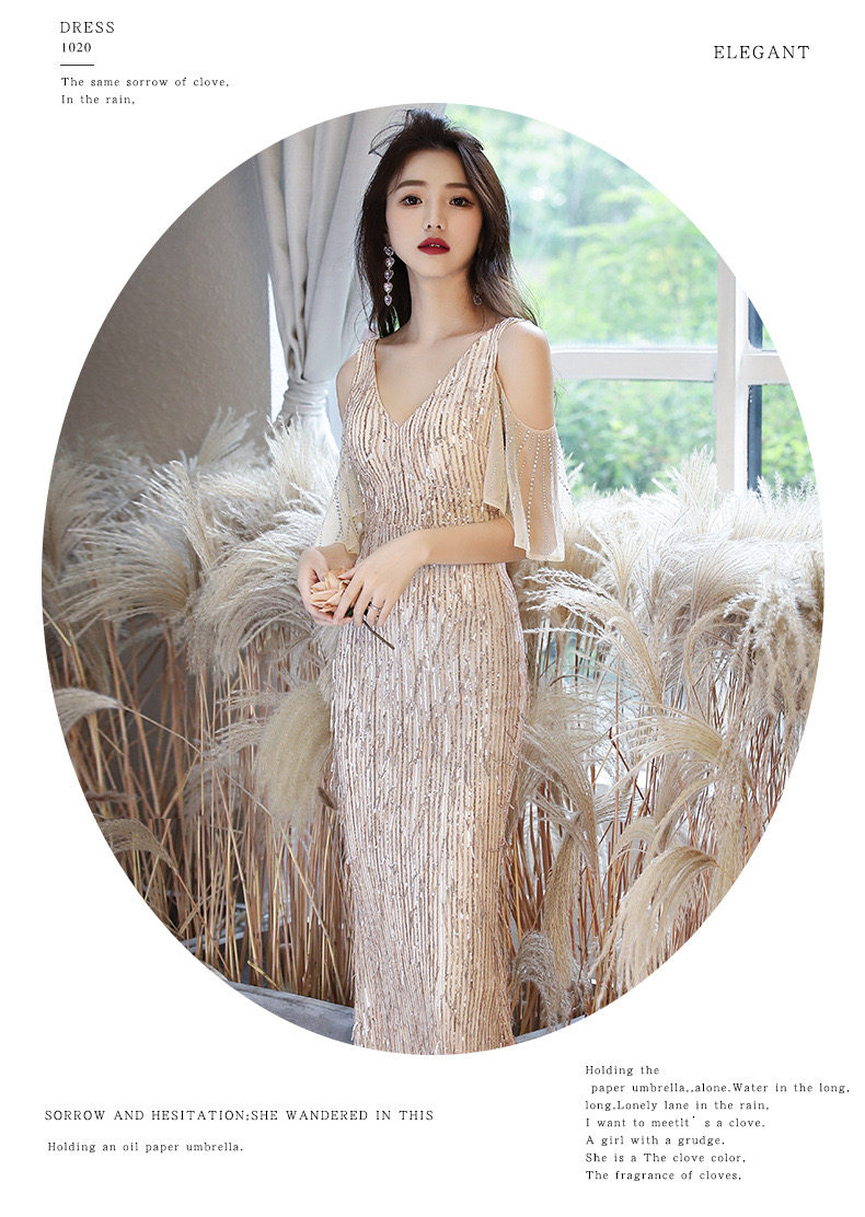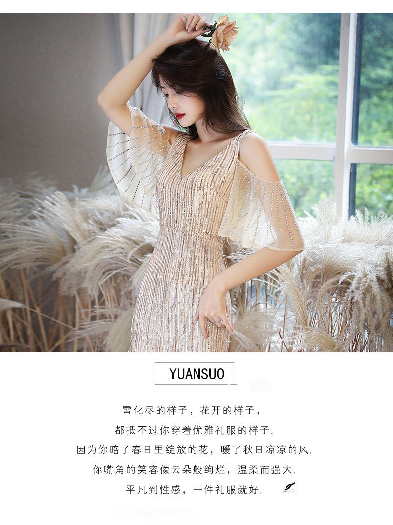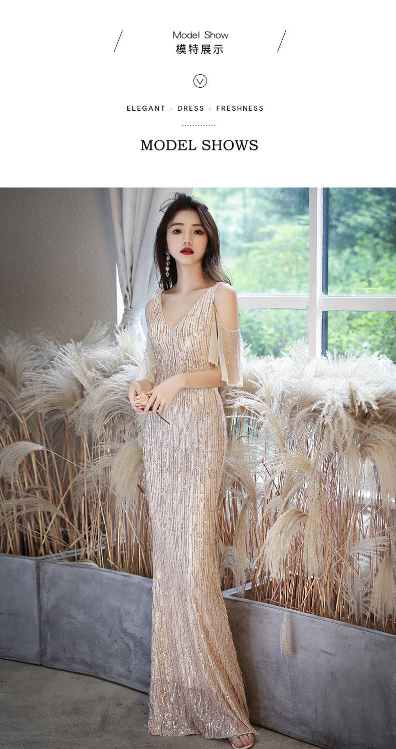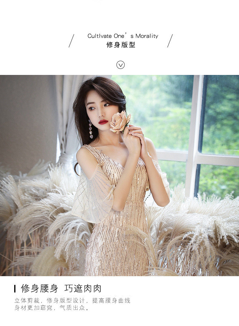 Золотое вечернее платье, коллекция 2021, городской стиль, крой «рыбий хвост»