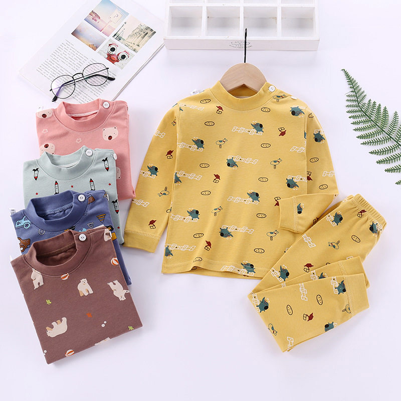 Детское нижнее белье, комплект, хлопковое термобелье для мальчиков, хлопковая пижама с круглым воротником