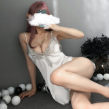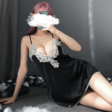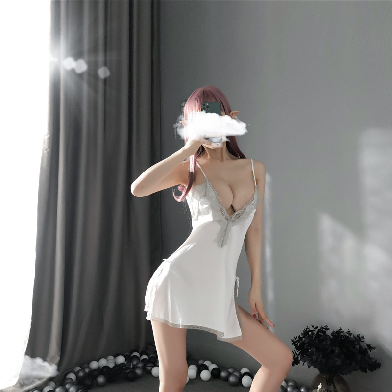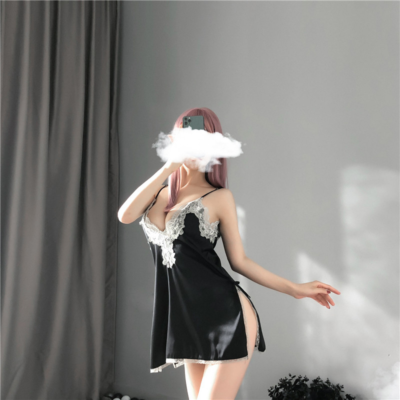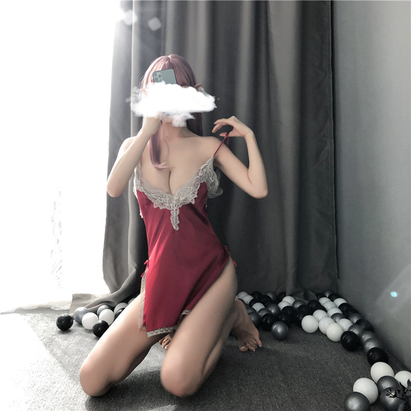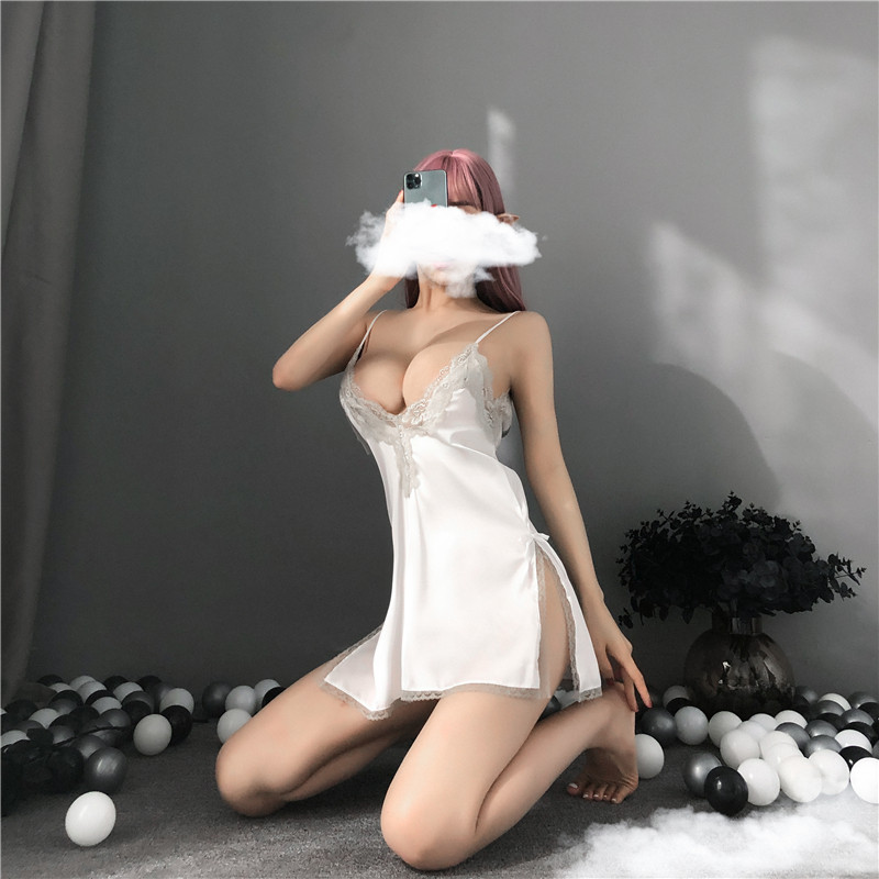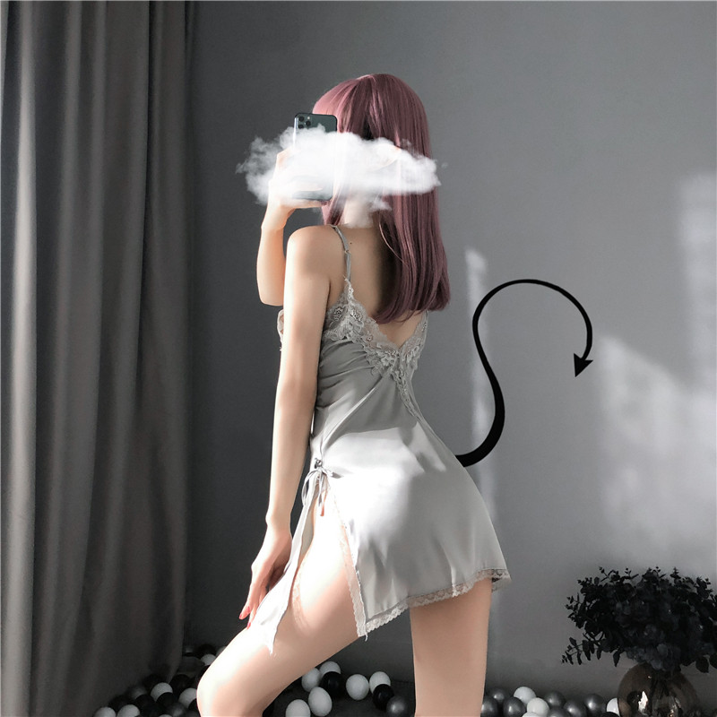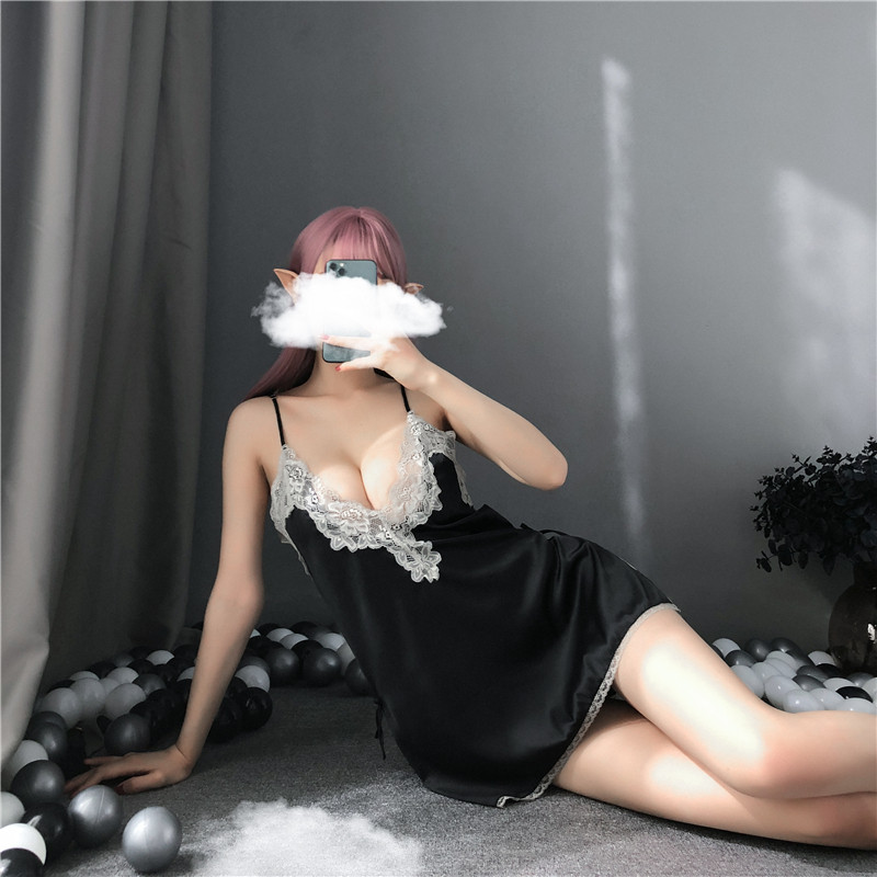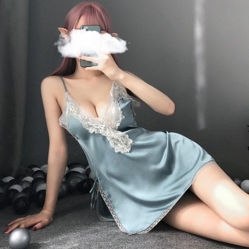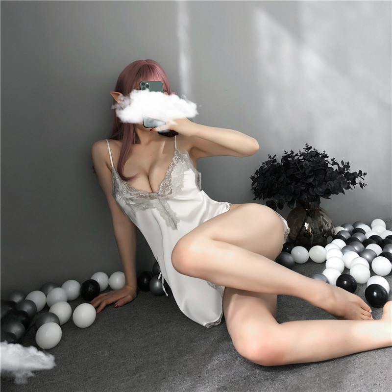 Сексуальное кружевное нижнее белье, шелковая мини-юбка, комплект, V-образный вырез, эффект подтяжки, с открытой спиной