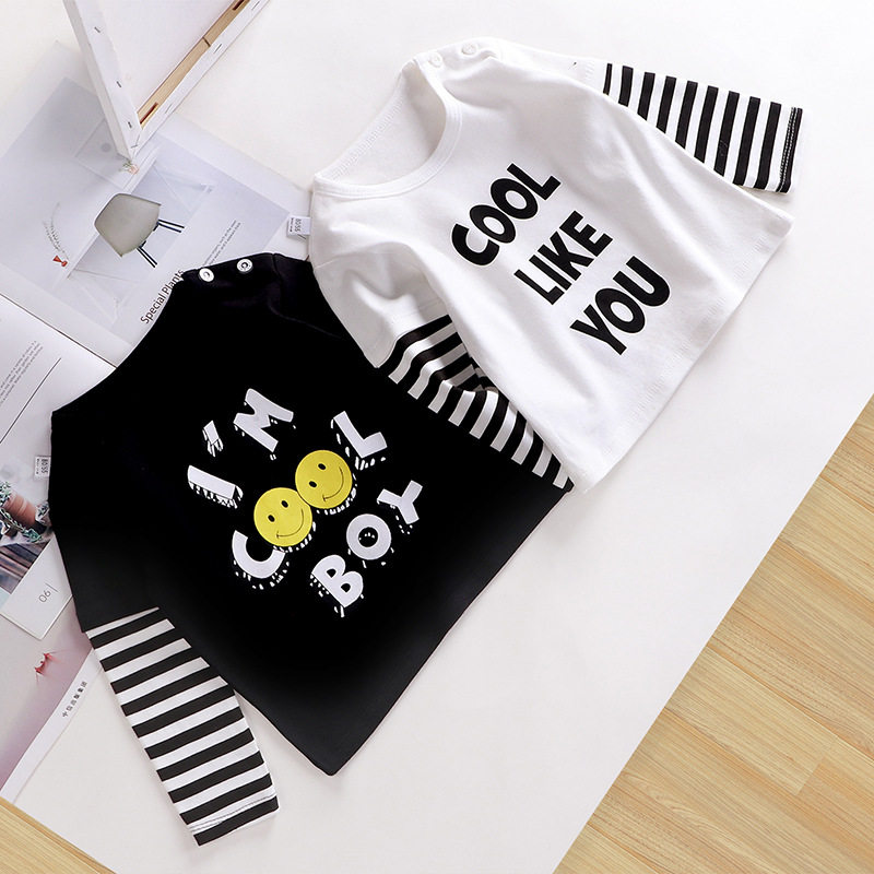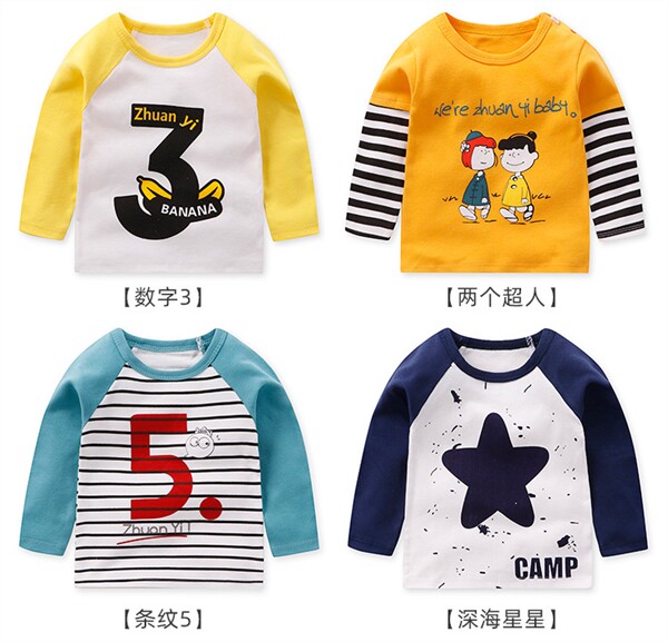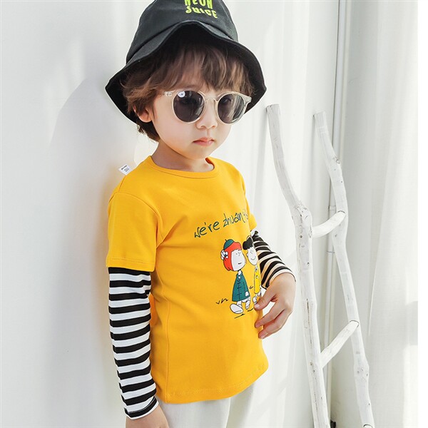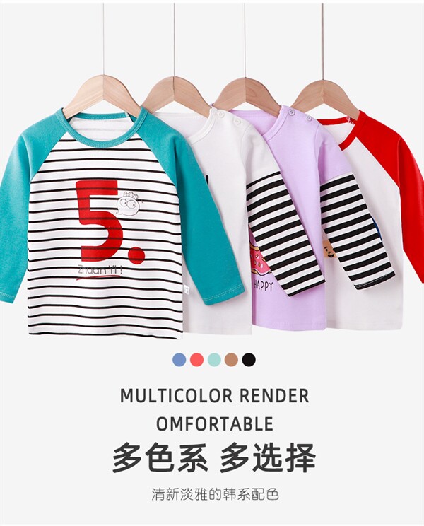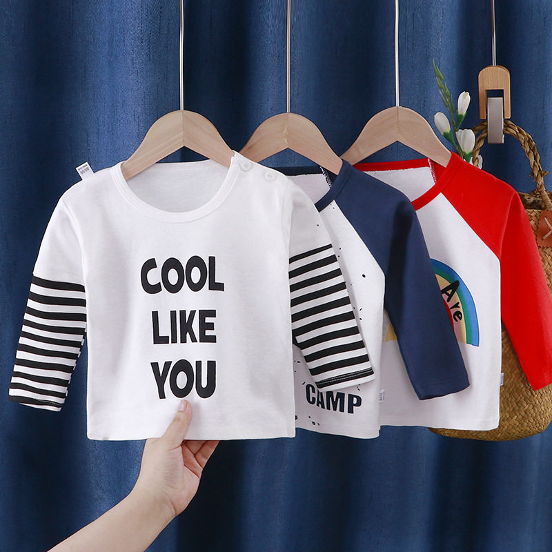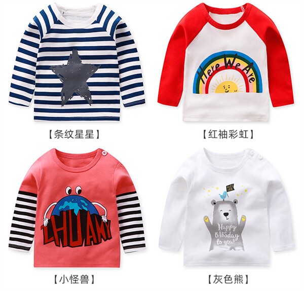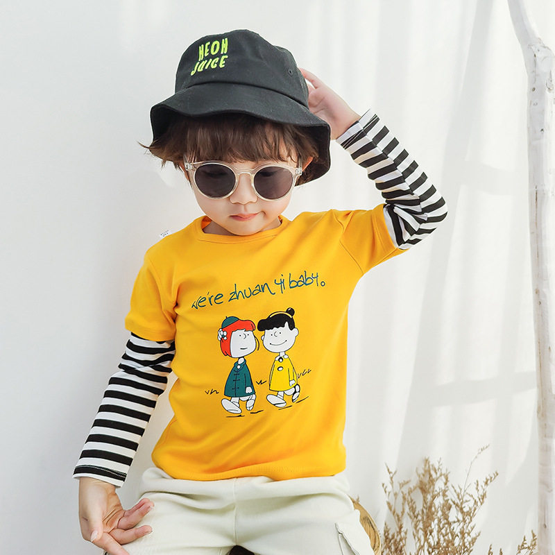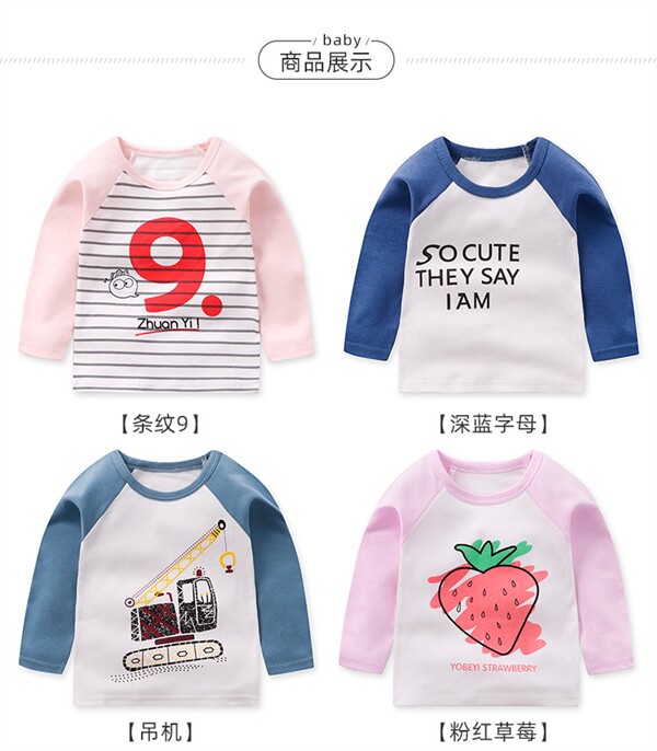 Осенний базовый приятный телу мультяшный лонгслив для мальчиков и девочек с круглым воротником