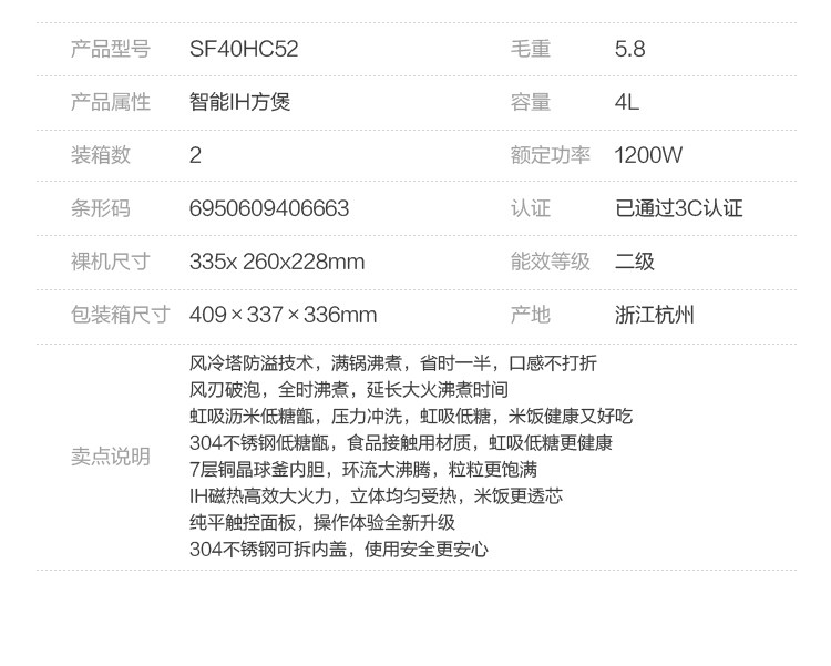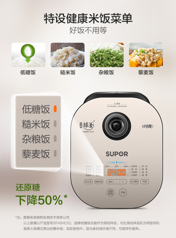 Supor Xiaoyuki с низким сахаром Ih рисоварки дома 4L Большая способность много -функциональная паровая смарт -вареная рисоватка рисова