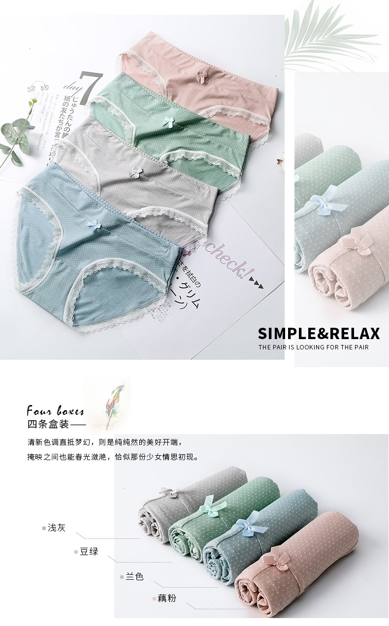 芬腾 Нижнее белье, сексуальные кружевные штаны, хлопковые милые дышащие трусы, средняя посадка