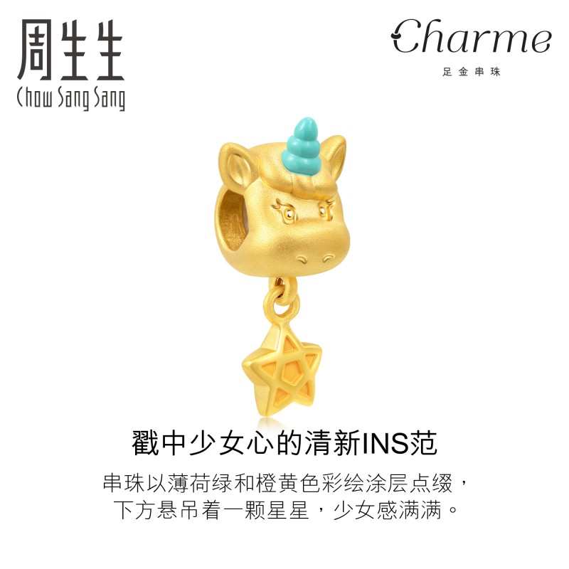 周生生 Золото (нога золота) CHARME милый Unicorn Transfer Pearl 91620C твердое золото