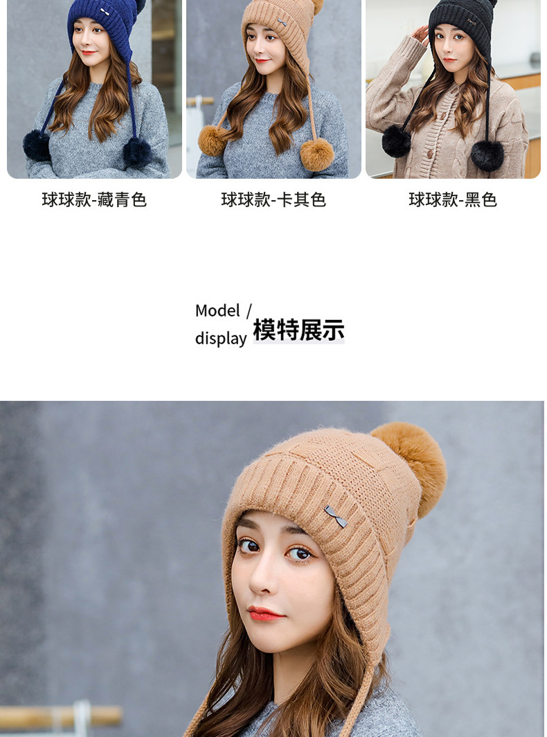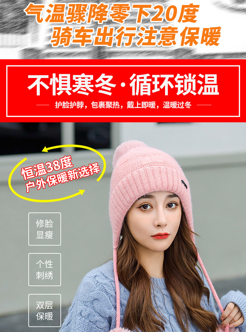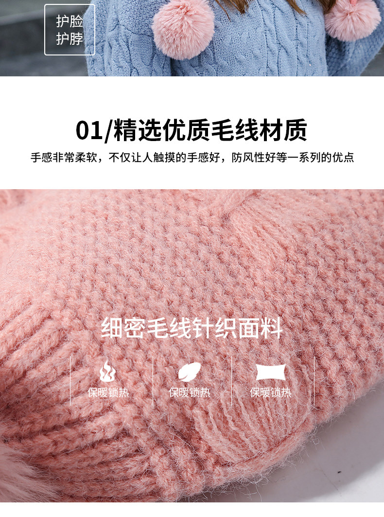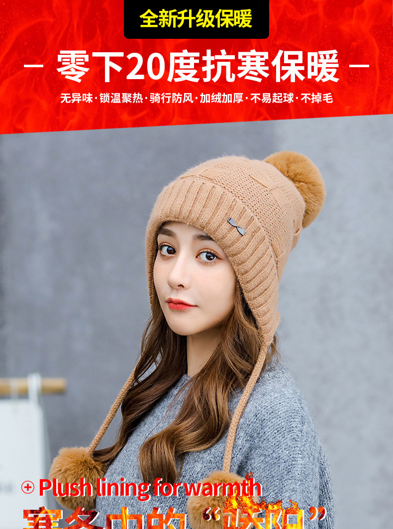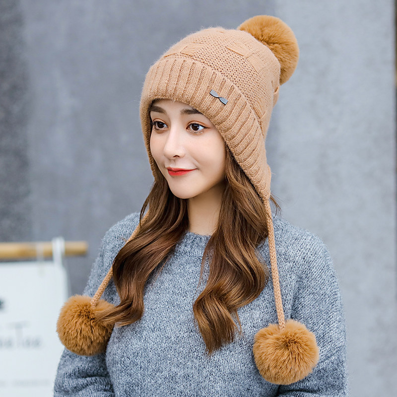 Утепленная трикотажная зимняя милая шерстяная вязаная шапка с капюшоном, в корейском стиле