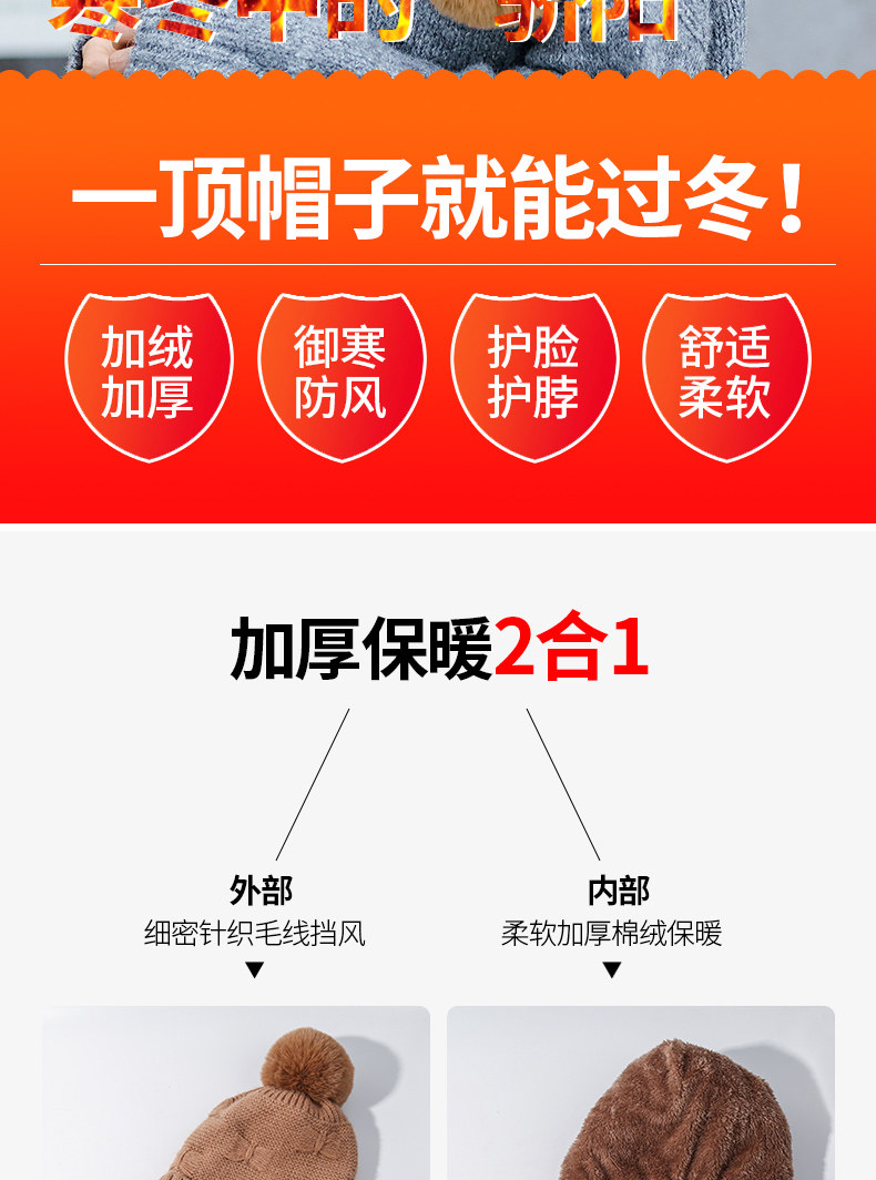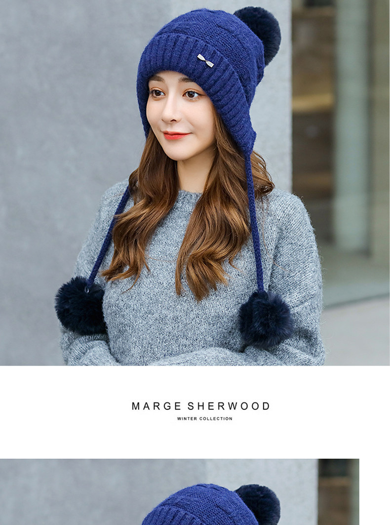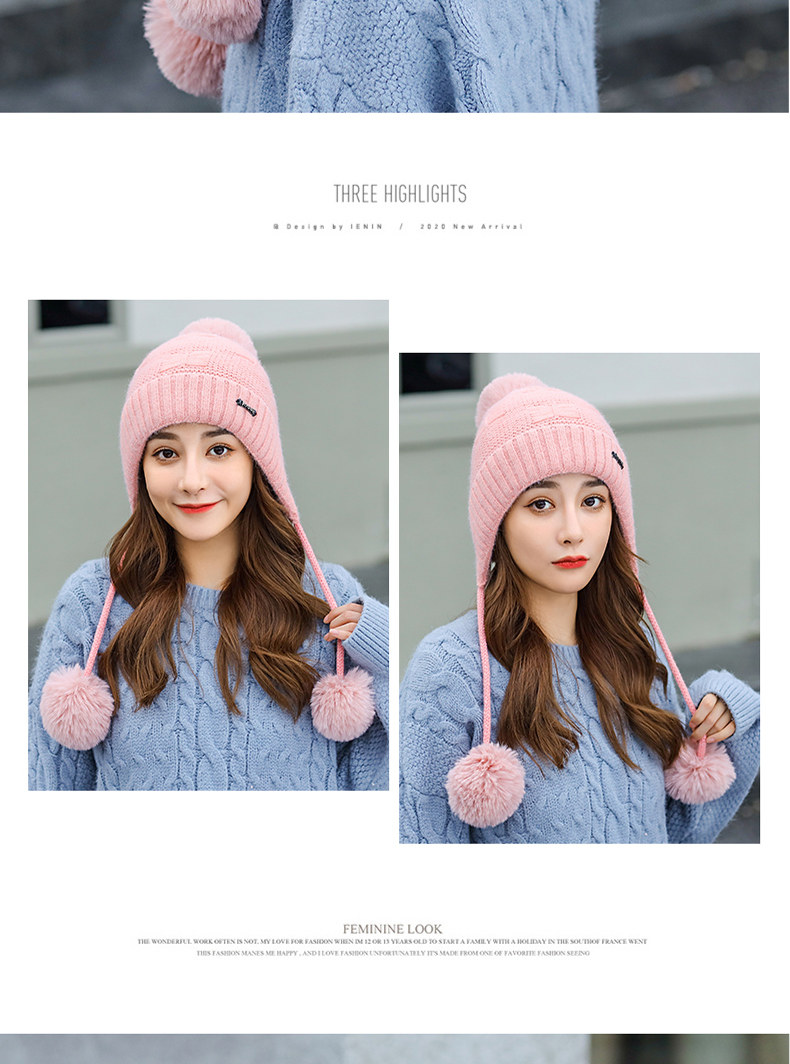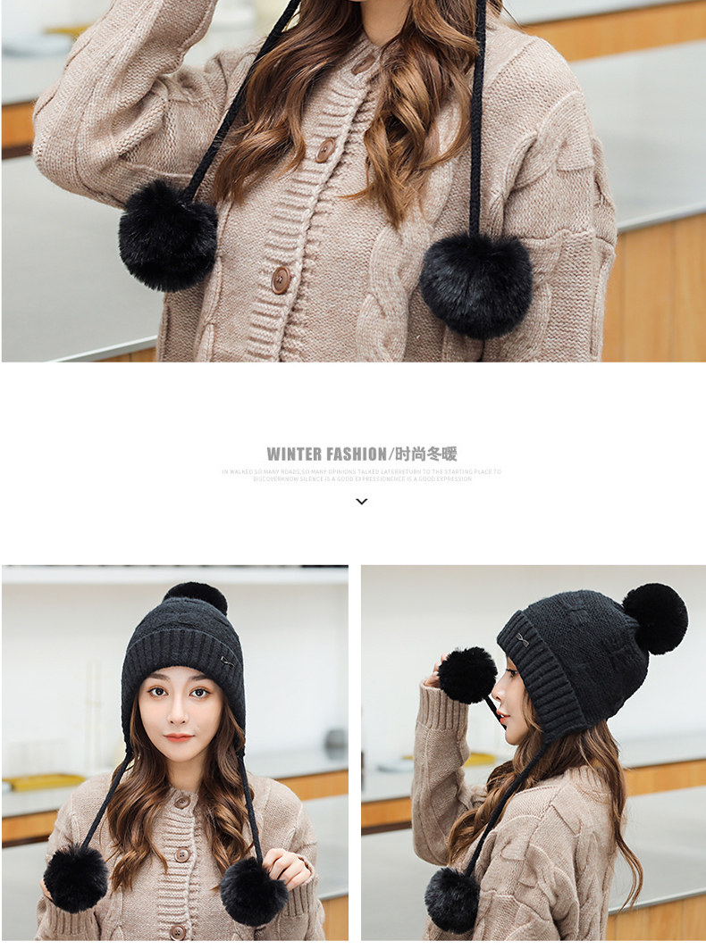 Утепленная трикотажная зимняя милая шерстяная вязаная шапка с капюшоном, в корейском стиле
