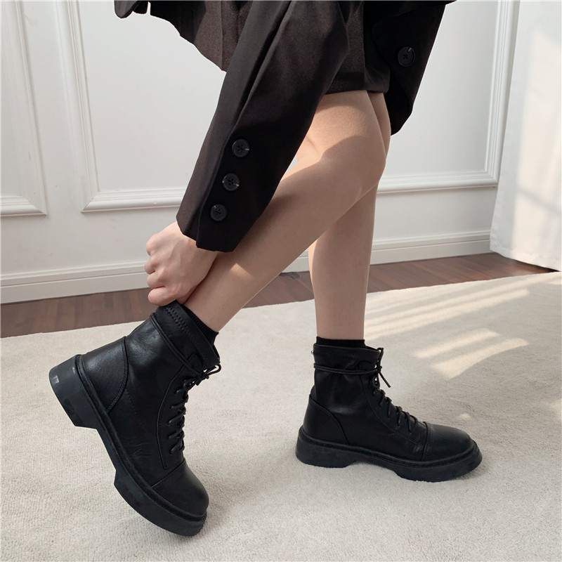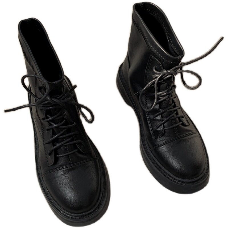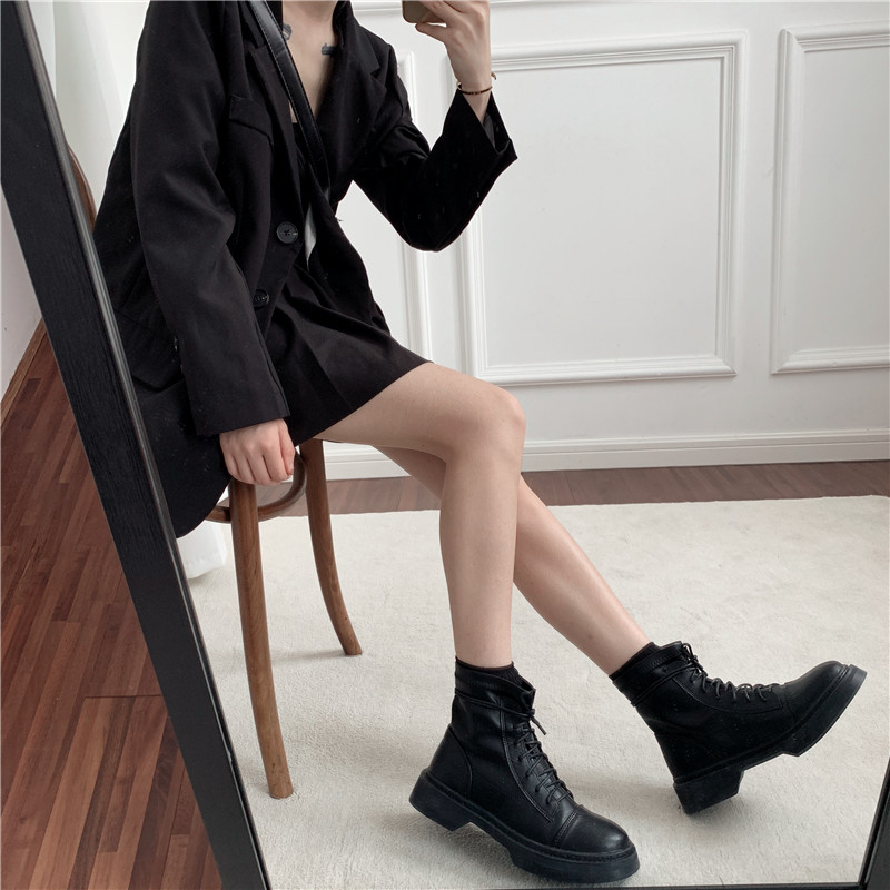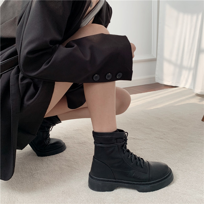 Martens, черные короткие сапоги в английском стиле, челси на платформе, 2023, осенние, тренд сезона, европейский стиль