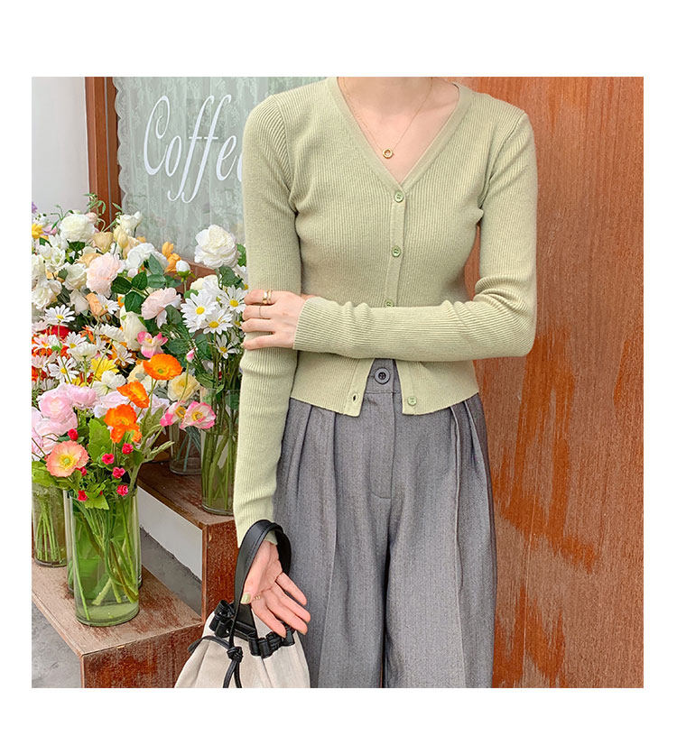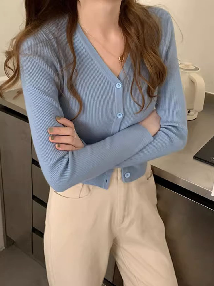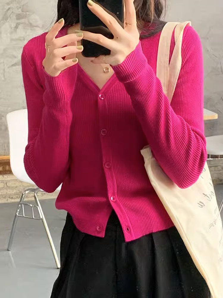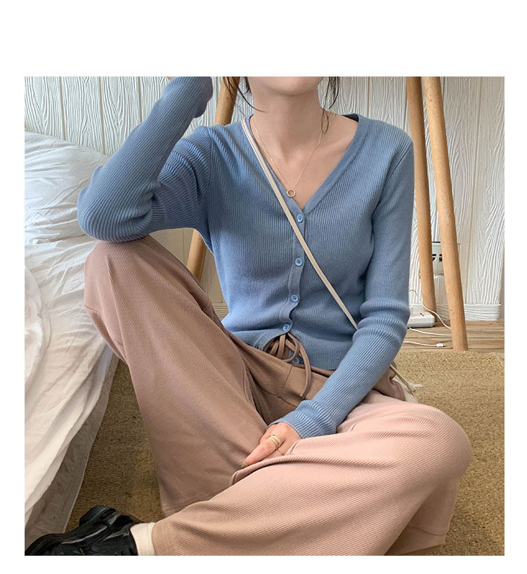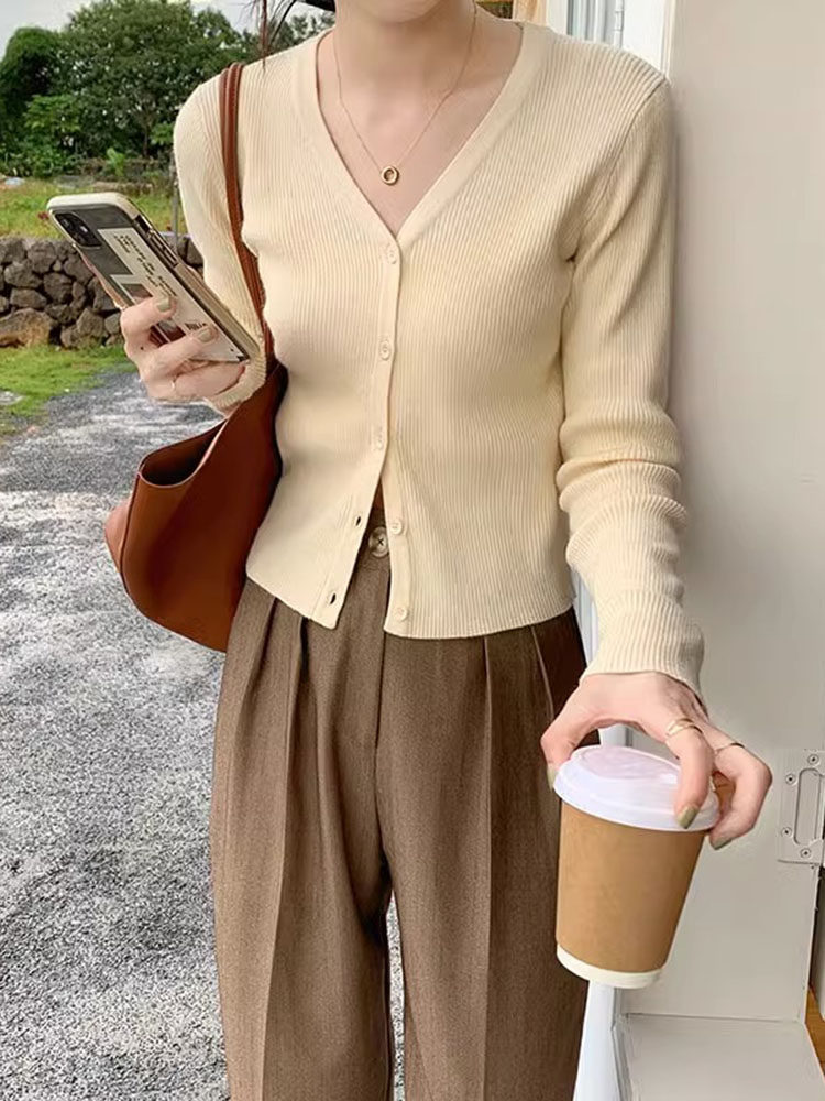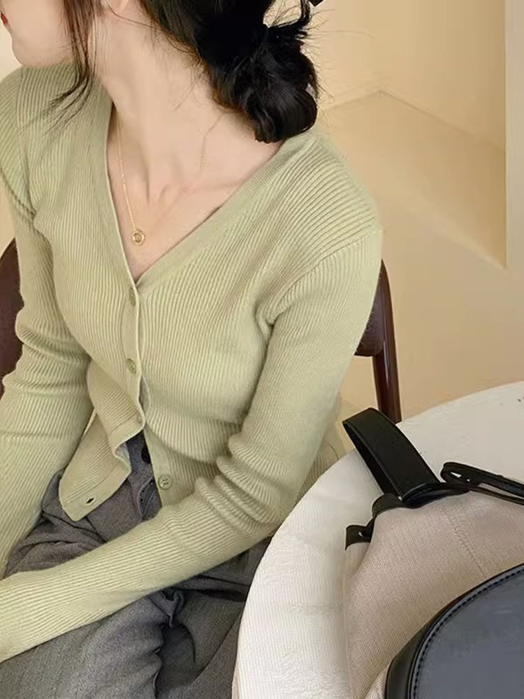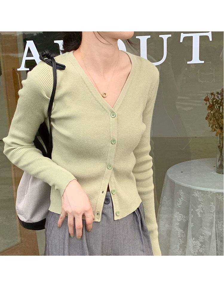 Милый кардиган, осеннее термобелье, приталенный лонгслив, свитер, куртка, V-образный вырез