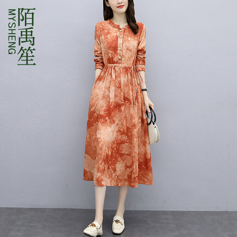 Осеннее платье, ретро приталенный корсет, лонгслив, из хлопка и льна, коллекция 2021