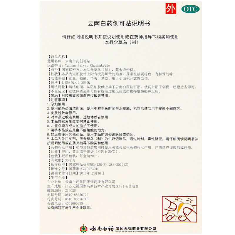 云南白药 Водонепроницаемый дышащий износостойкий лейкопластырь, 1.5см, 2.3см, 20 штук