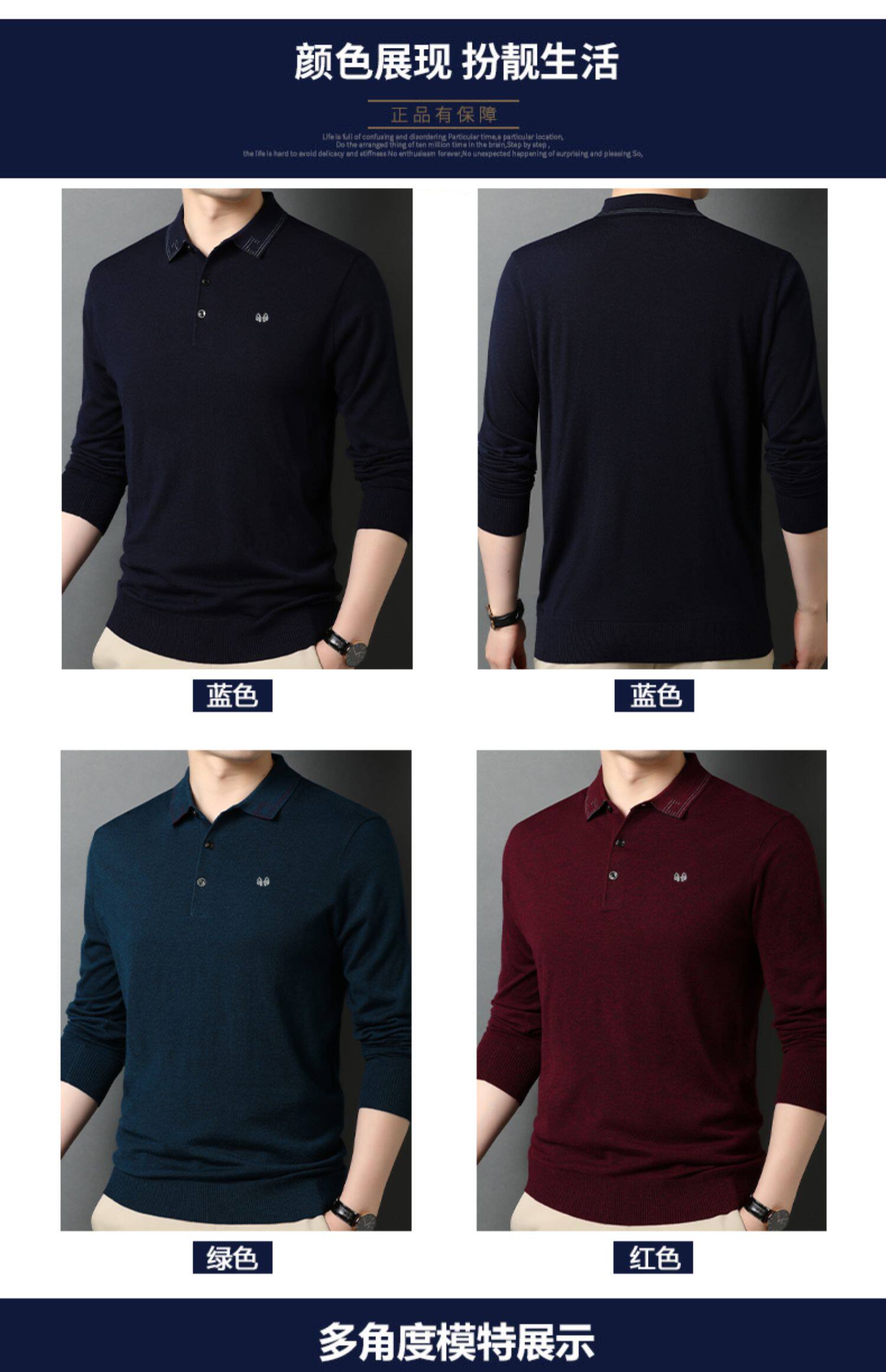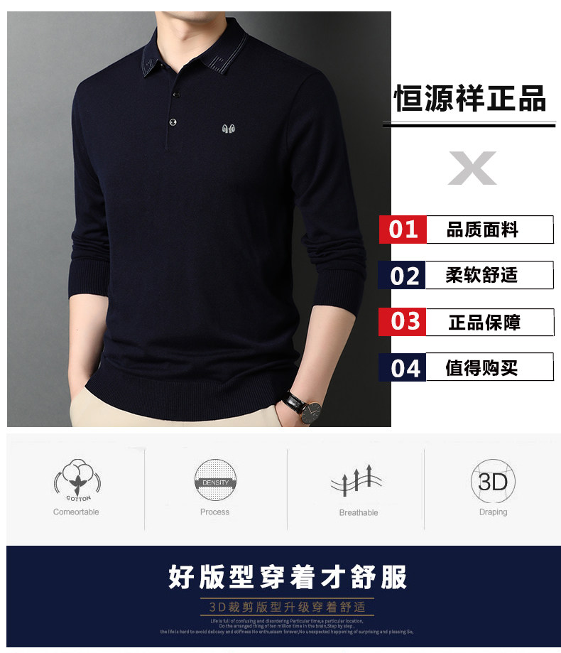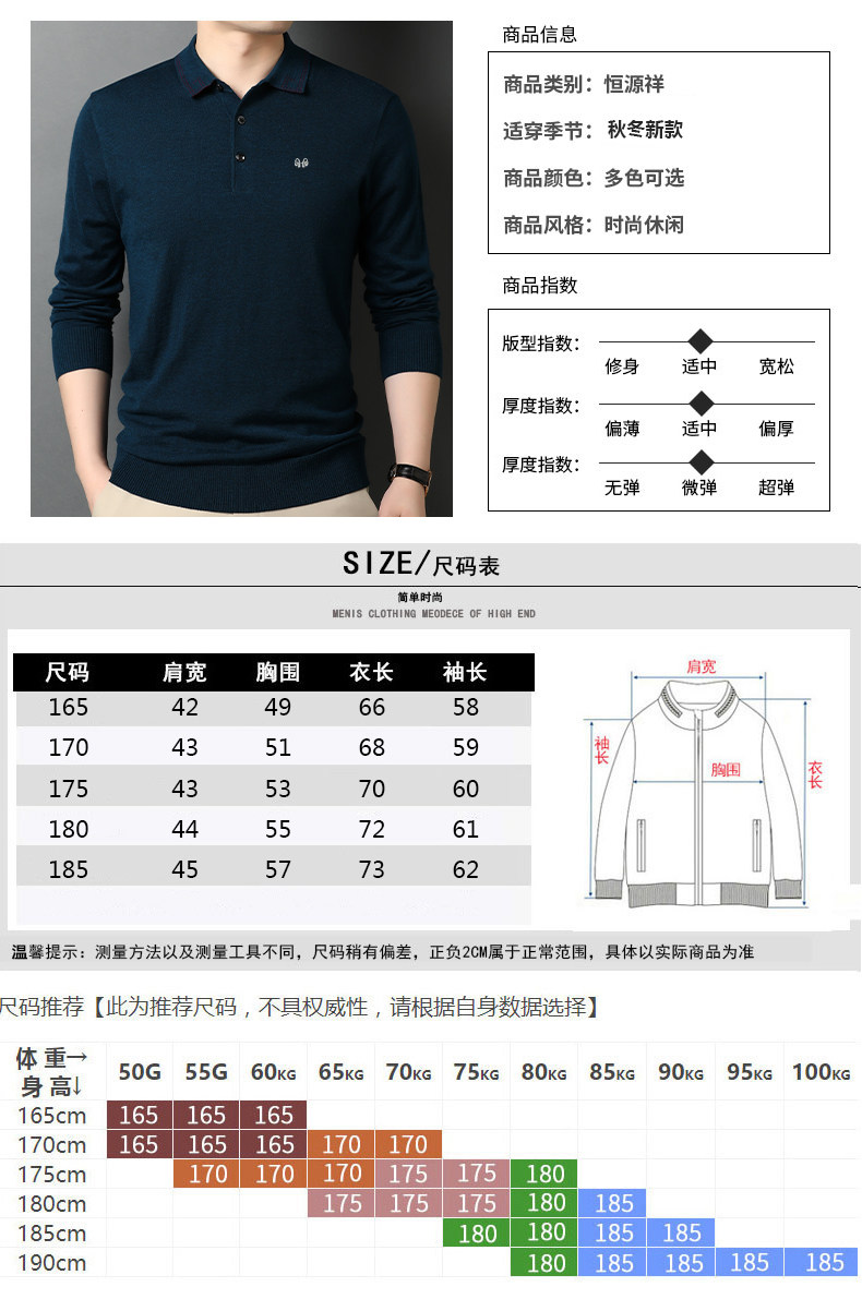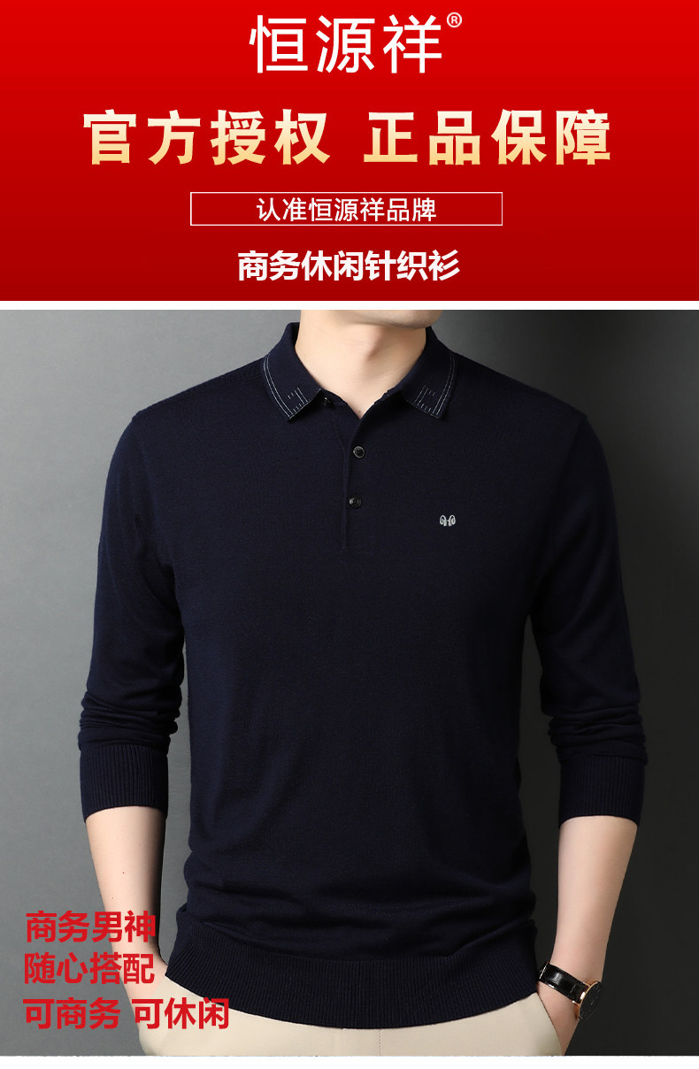 恒源祥 Демисезонный цветной лонгслив, шерстяной трикотажный тонкий свитер, высокий воротник