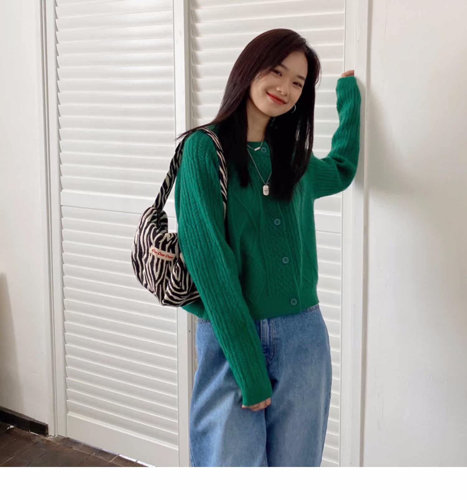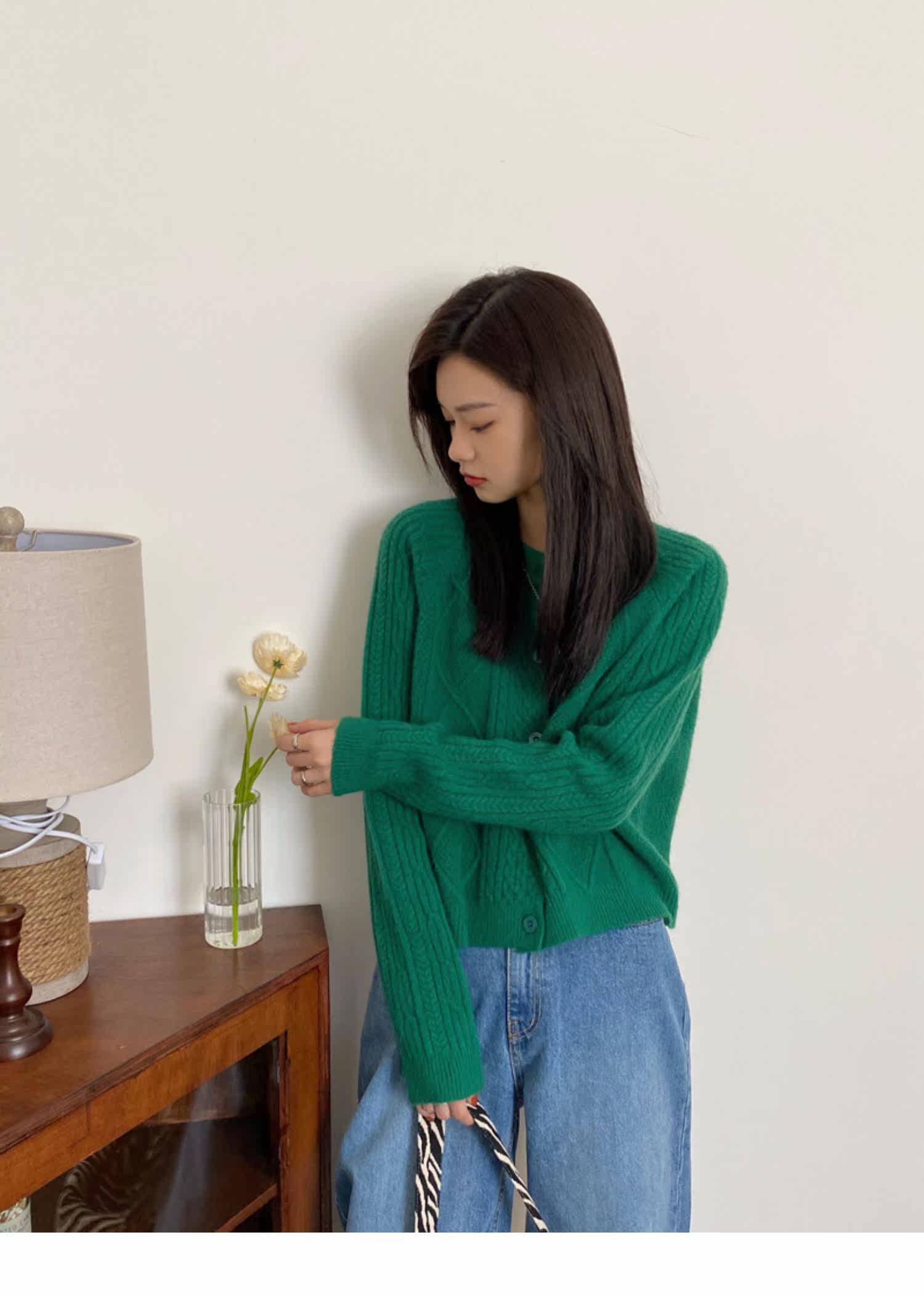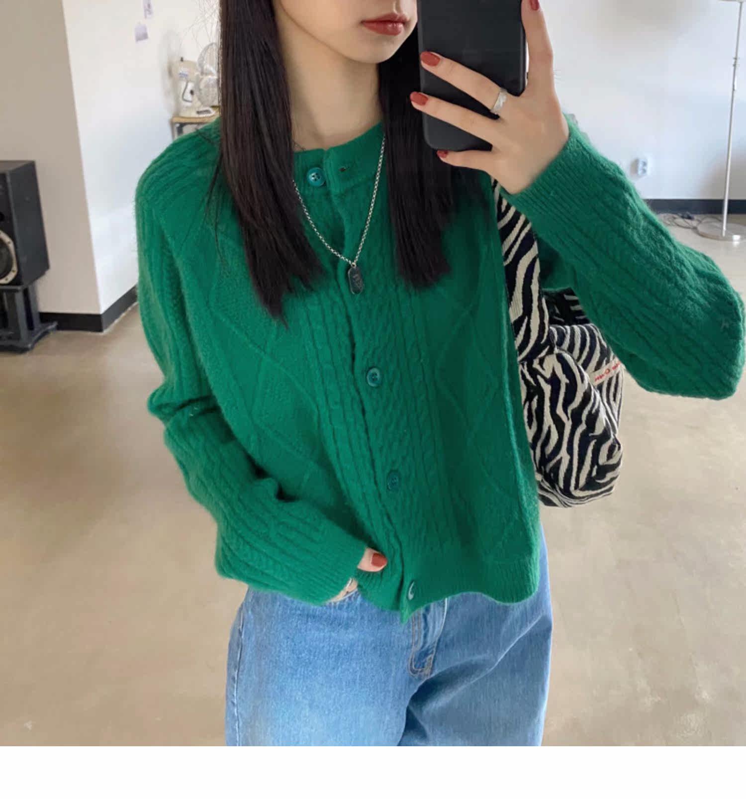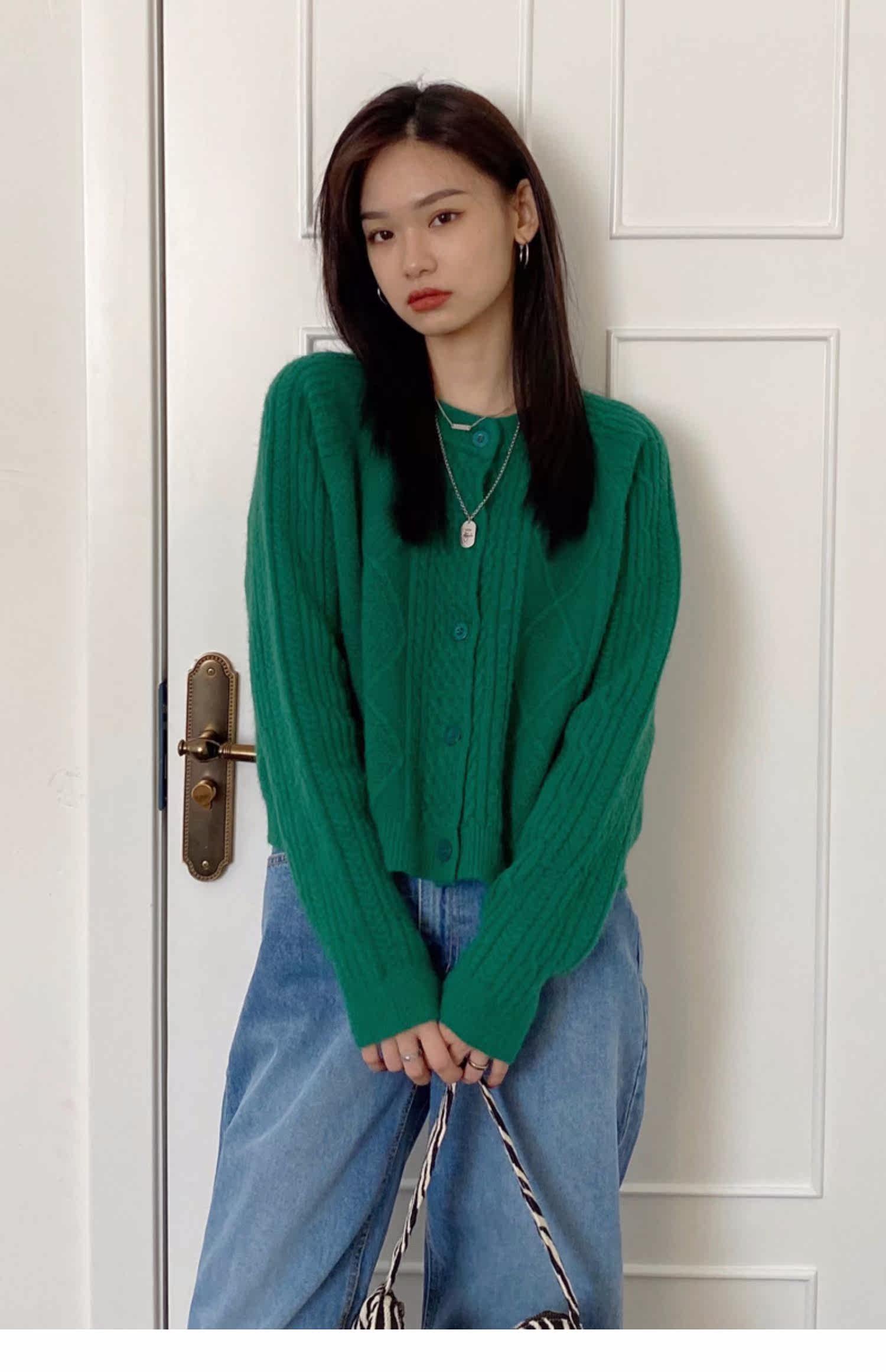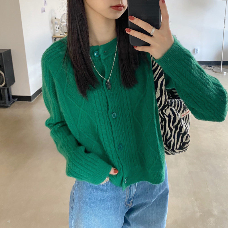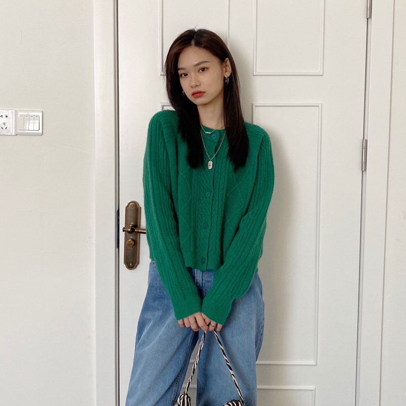 Брендовый зеленый свитер, ретро кардиган, короткая трикотажная куртка с ромбовидным узором, в западном стиле, популярно в интернете